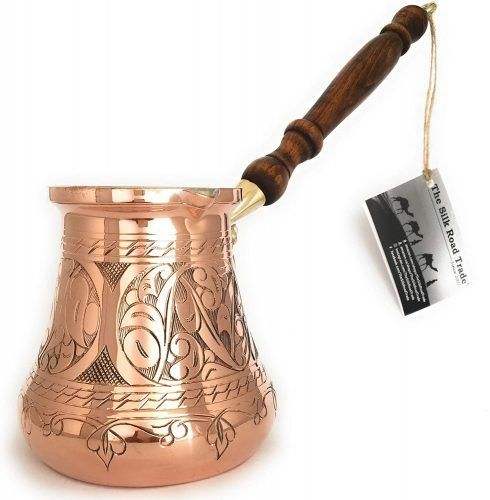 เครื่องชงกาแฟตุรกีสไตล์วินเทจ ทำจากโลหะ พร้อมลวดลายตกแต่ง และด้ามจับไม้ทนความร้อน สำหรับใช้กับเตาแก๊ส