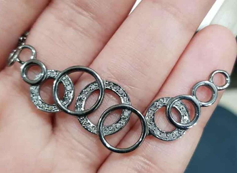 925ชุบโรเดียมสีดำประดับเพชรแนววินเทจขนาด48X25มม. สำหรับงานแต่งงานงานหมั้น