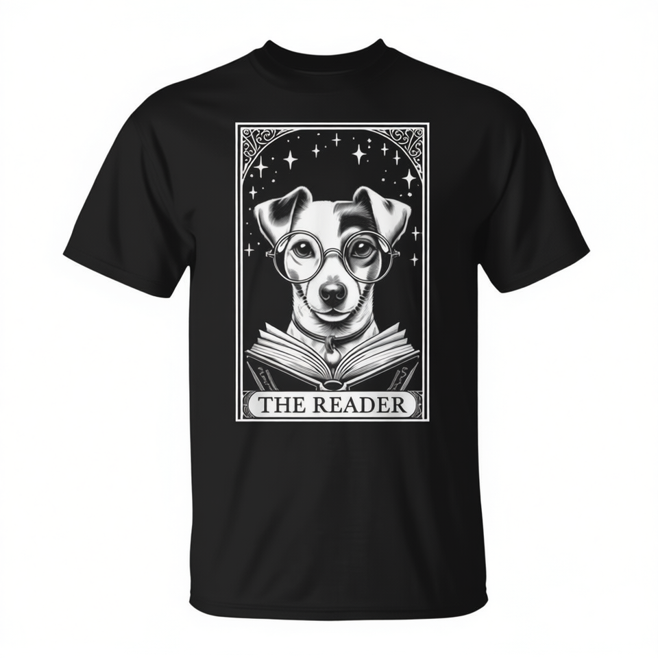 เสื้อยืดแขนสั้นพิมพ์ลายสกรีนลายไพ่ทาโรต์วินเทจแจ็ค รัสเซล เทอร์เรียร์ สำหรับผู้ชายและผู้หญิง เสื้อผ้าสำหรับคนรักหนังสือ ของที่ระลึก