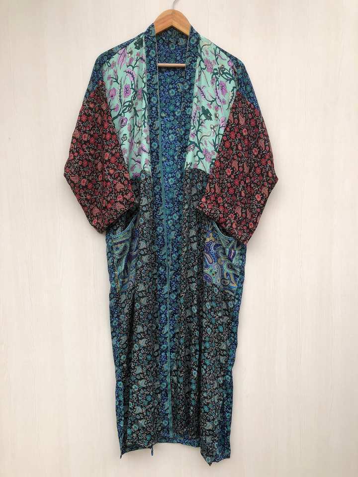 ชุดนอนผ้าไหมญี่ปุ่นแท้สไตล์วินเทจ ไซส์ใหญ่สำหรับผู้หญิง เนื้อผ้านุ่มสบาย เหมาะสำหรับงานปาร์ตี้ริมชายหาด ใช้คลุมบิกินี่ ชุดคลุมสไตล์โบโฮ