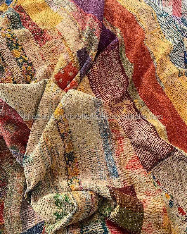 ผ้าห่มคันธาทำมือสไตล์ชาติพันธุ์ ขนาดเดี่ยว วินเทจ ผ้าห่มอินเดียโบราณ สำหรับใช้ในโรงแรมหรือที่บ้าน ผ้าห่มคันธาแบบเรียบง่าย