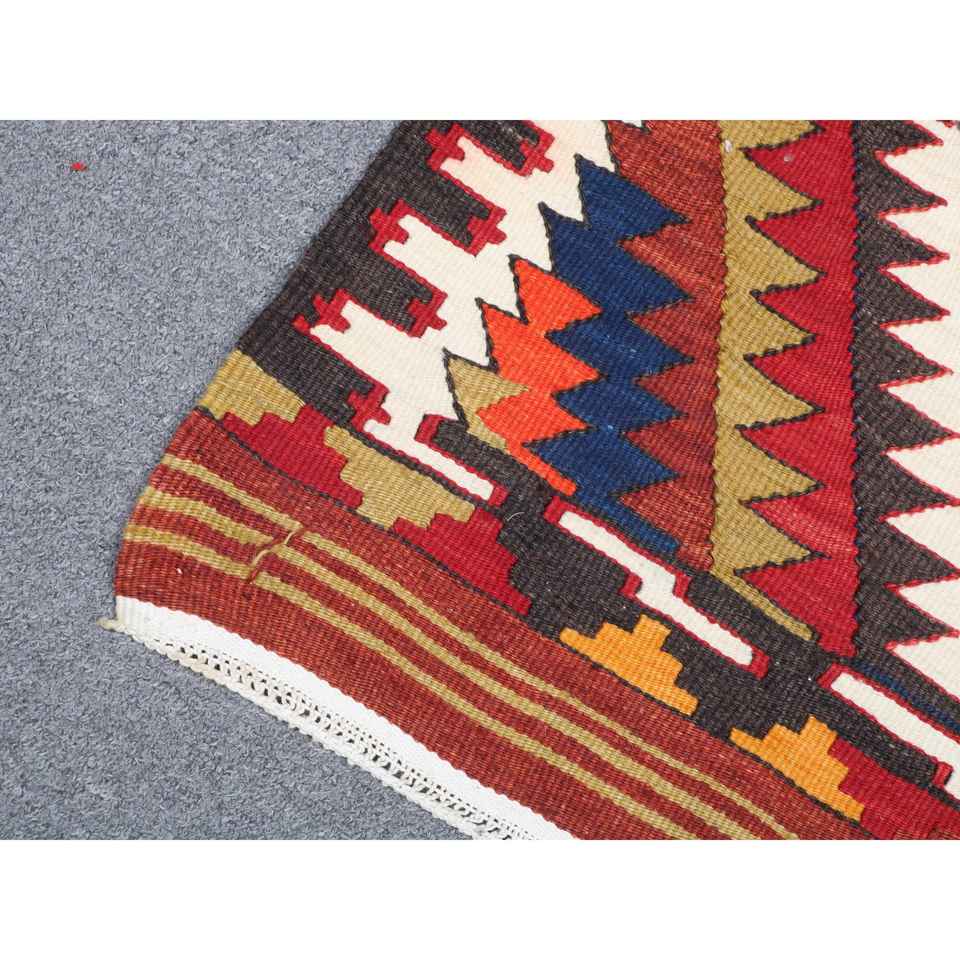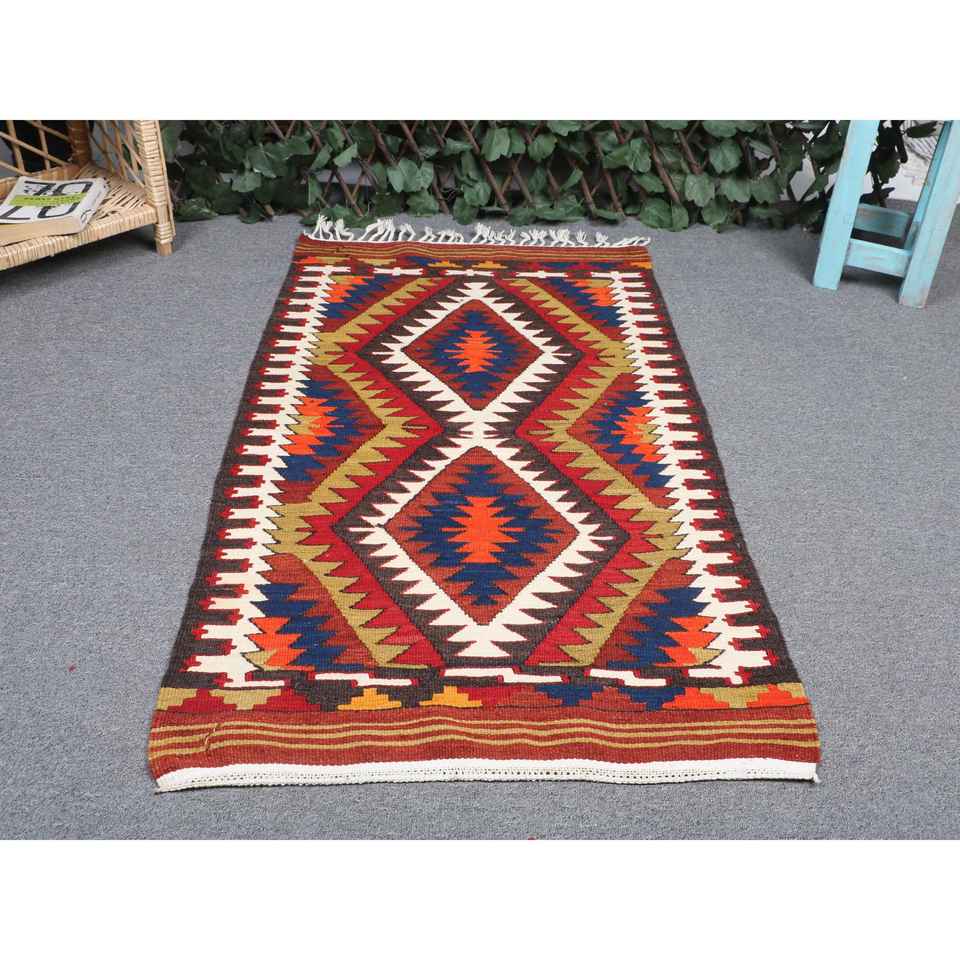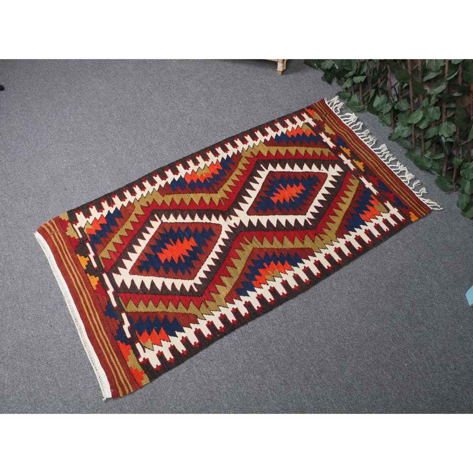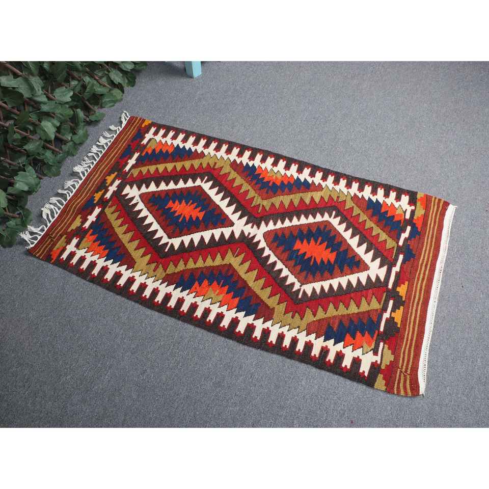 พรมคิลิมวินเทจ ขนาด 2.2x3.8 ฟุต (66x116 ซม.) ลายตารางสีแดง พรมตุรกี