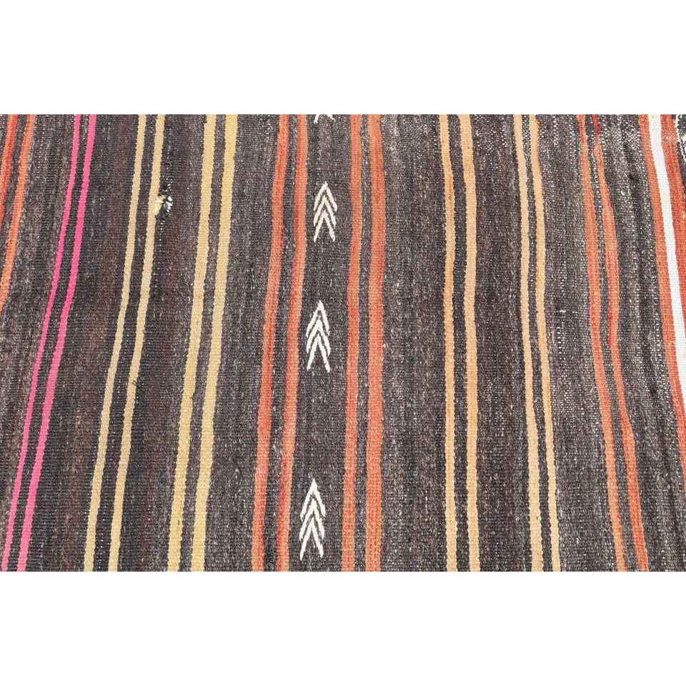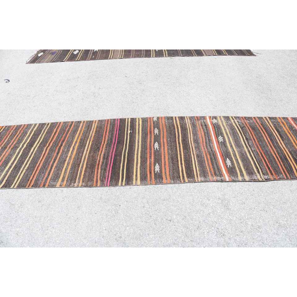 พรมวินเทจคิลิมรันเนอร์ ขนาด 2.3x12.7 ฟุต (71x388 ซม.) พรมขนสัตว์เปอร์เซียสีน้ำตาลตุรกี