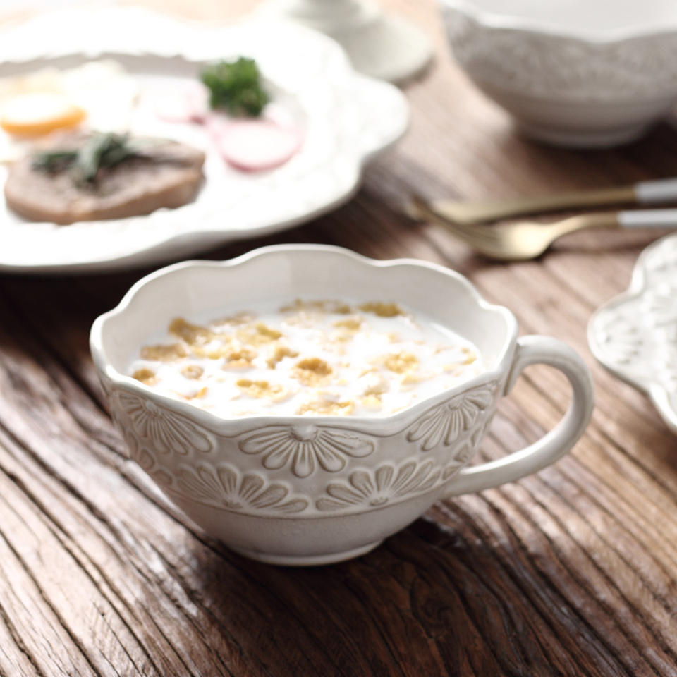 ชุดจานชามซุปจานผลไม้สำหรับอาหารเย็นชามอาหารจานลายนูนแบบมีหูสองข้างเปลี่ยนสไตล์วินเทจ