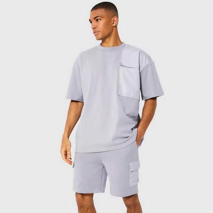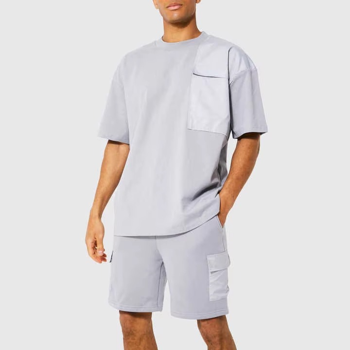 เสื้อยืดวิ่งและกางเกงขาสั้นชุดเซ็ตสำหรับผู้ชาย ผ้าถักวินเทจ เป็นมิตรกับสิ่งแวดล้อม ระบายอากาศได้ดี เหมาะสำหรับฤดูร้อน แขนสั้น สามารถปรับแต่งได้