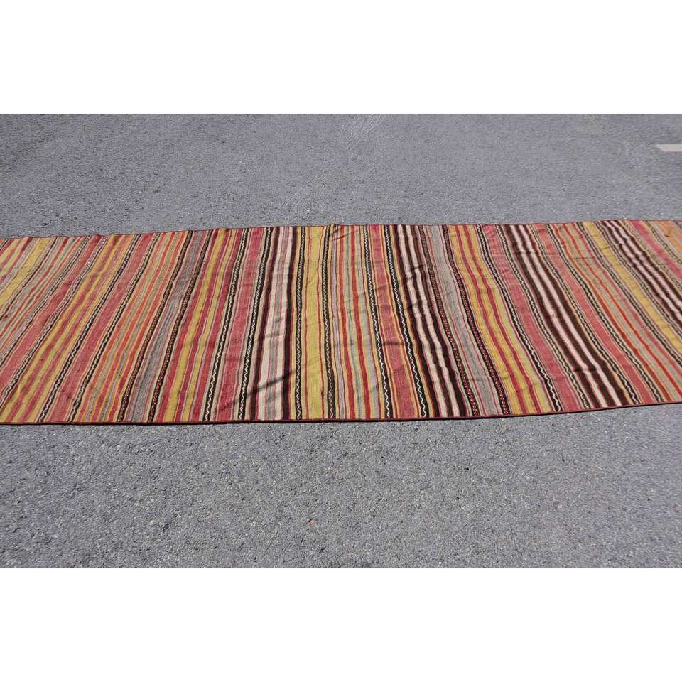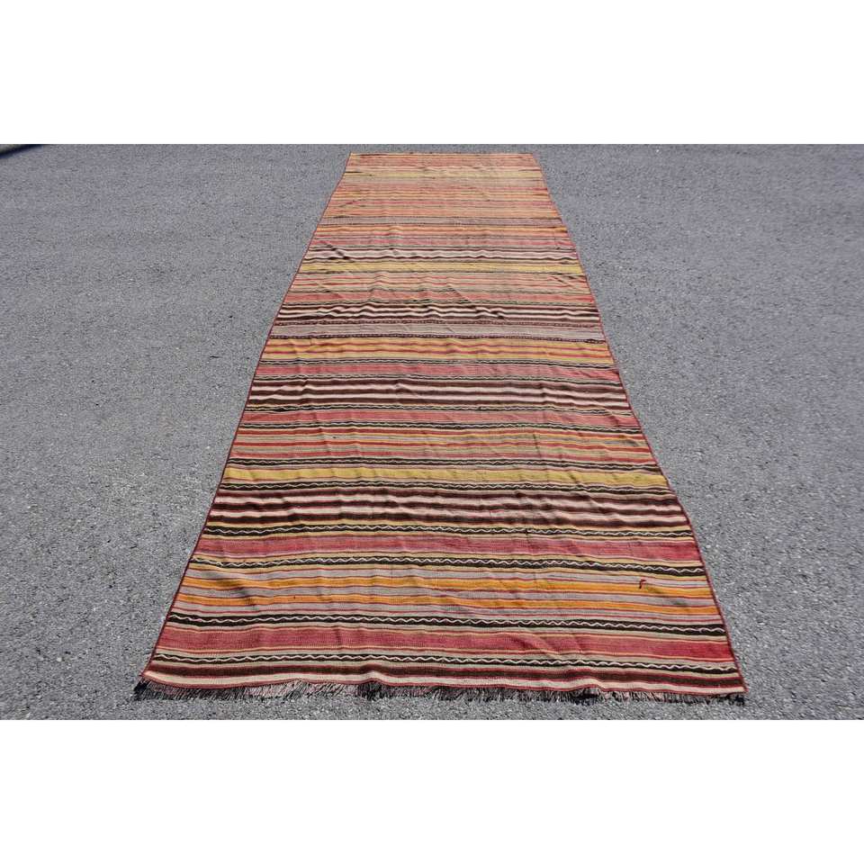 พรม kilim พื้นที่กว้างแบบวินเทจขนาด44x133ฟุตดีไซน์เย็บปะสีแดงสีเหลืองวัสดุขนสัตว์เทคนิคการถักแบบแบนสำหรับวัยรุ่น