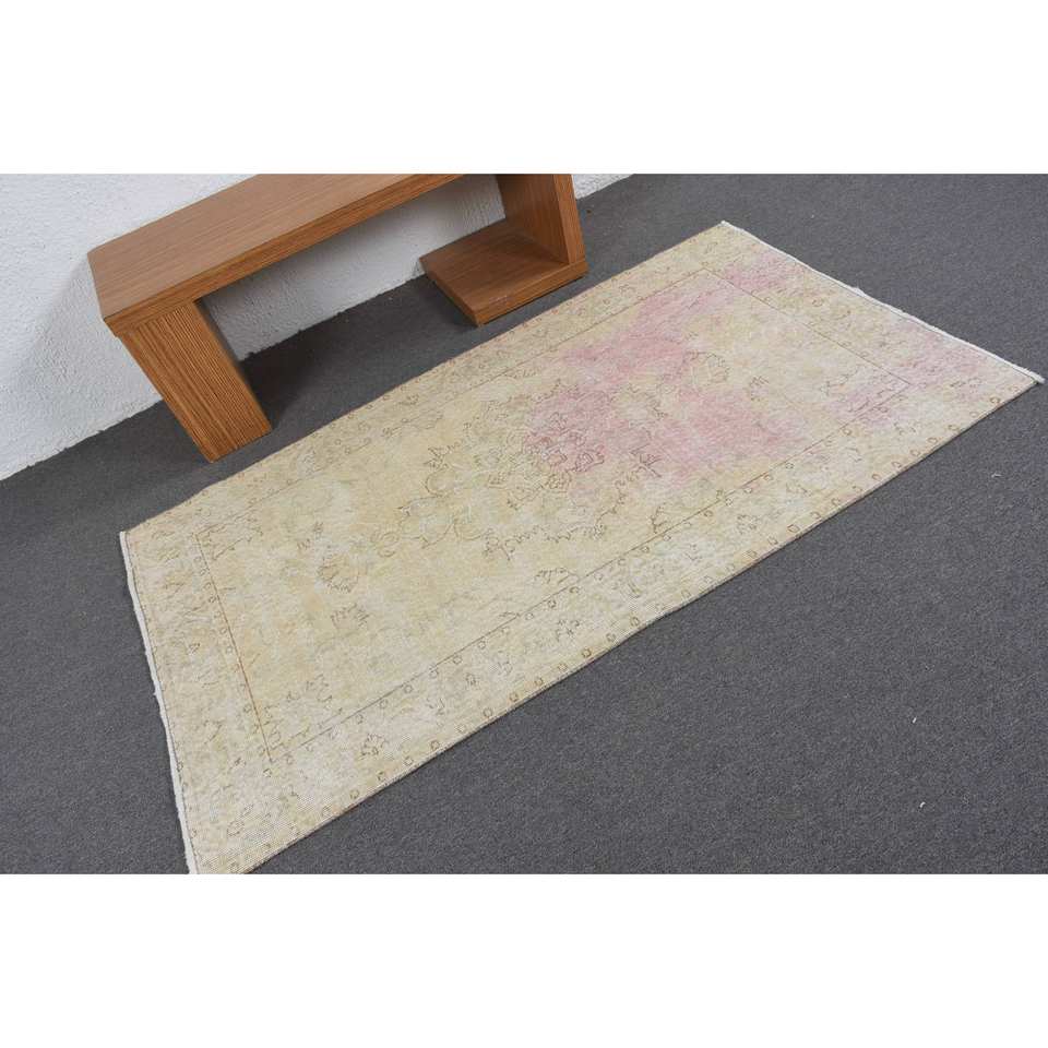พรมปูพื้นสไตล์วินเทจขนาดใหญ่สีเบจ-ชมพู3.7x6.5ฟุตสไตล์คลาสสิกพรมขนแกะลายสี่เหลี่ยมผืนผ้าวัสดุลาเท็กซ์สำหรับห้อง