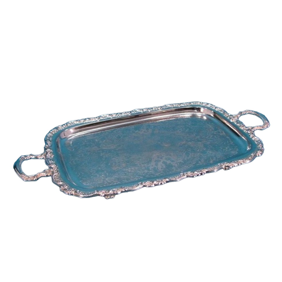 ถาดใส่อาหารเครื่องเงินโลหะขนาดใหญ่แนววินเทจถาดใส่อาหารลายนูนรูปทรงตามสั่ง