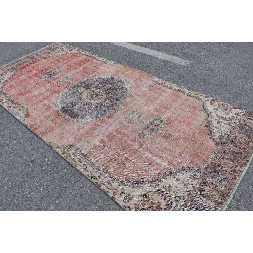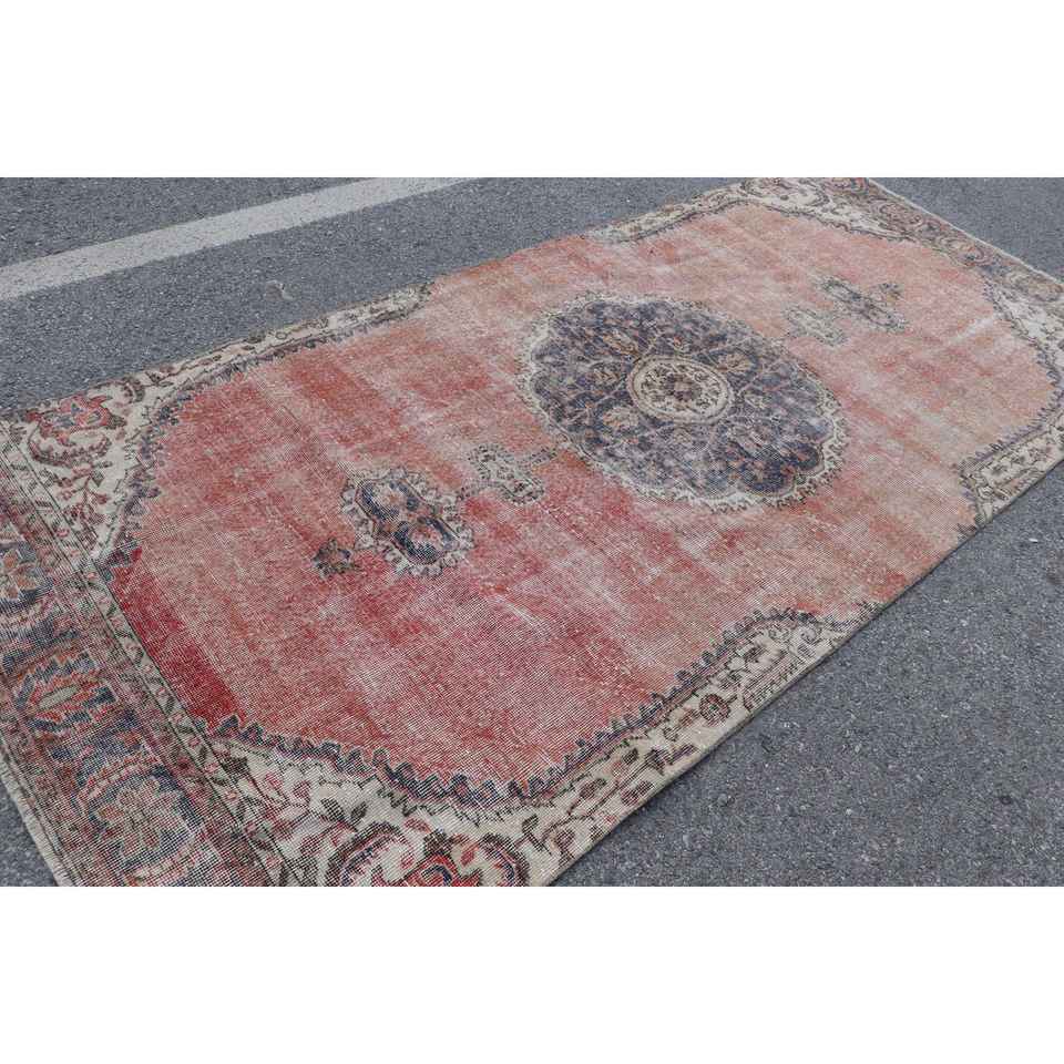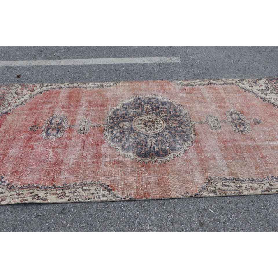 พรมวินเทจขนาดใหญ่ 4.7x10.3 ฟุต (144x314 ซม.) พรมขนสัตว์ลายพรางสีแดงแบบตุรกี