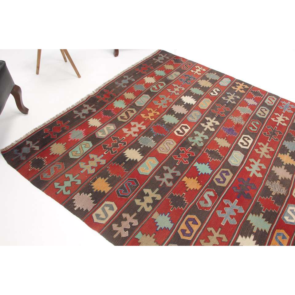 พรมวินเทจขนาดใหญ่ 5.6x7.9 ฟุต พรมขนสัตว์ลายดอกไม้สีแดงสไตล์ตุรกี