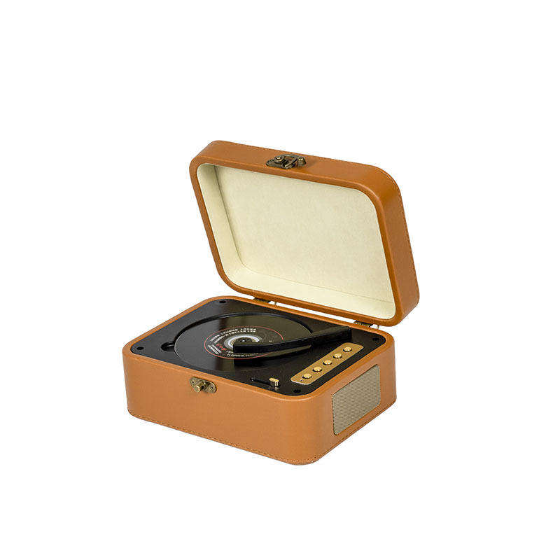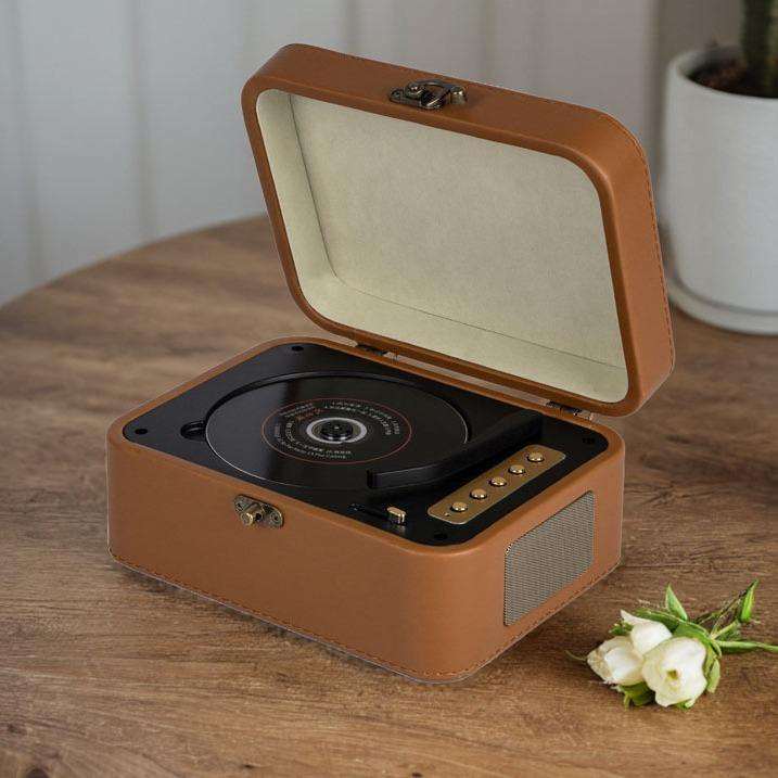 ลำโพงมินิแบบพกพา ดีไซน์วินเทจ หนังแท้ รูปทรงเครื่องเล่นซีดี ดีไซน์เรโทร ของตกแต่งบ้าน ของขวัญ