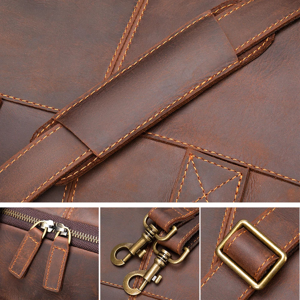 กระเป๋าหนังสไตล์วินเทจสำหรับผู้ชาย, กระเป๋าหนังวัวเครซี่ฮอร์สความจุขนาดใหญ่