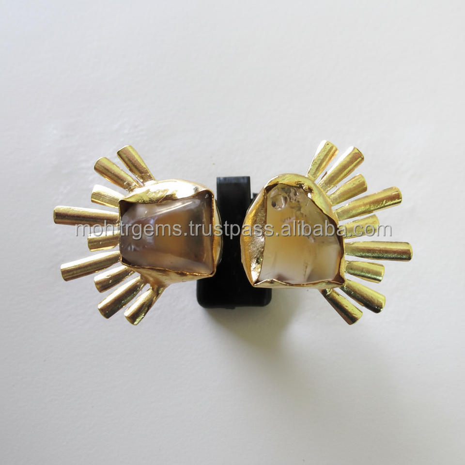 วินเทจเลมอนควอตซ์2หินขัดขวางสไตล์ค็อกเทลแหวนอัญมณีทองเหลืองขนาดฟรีสำหรับงานหมั้นเครื่องประดับเด็ก