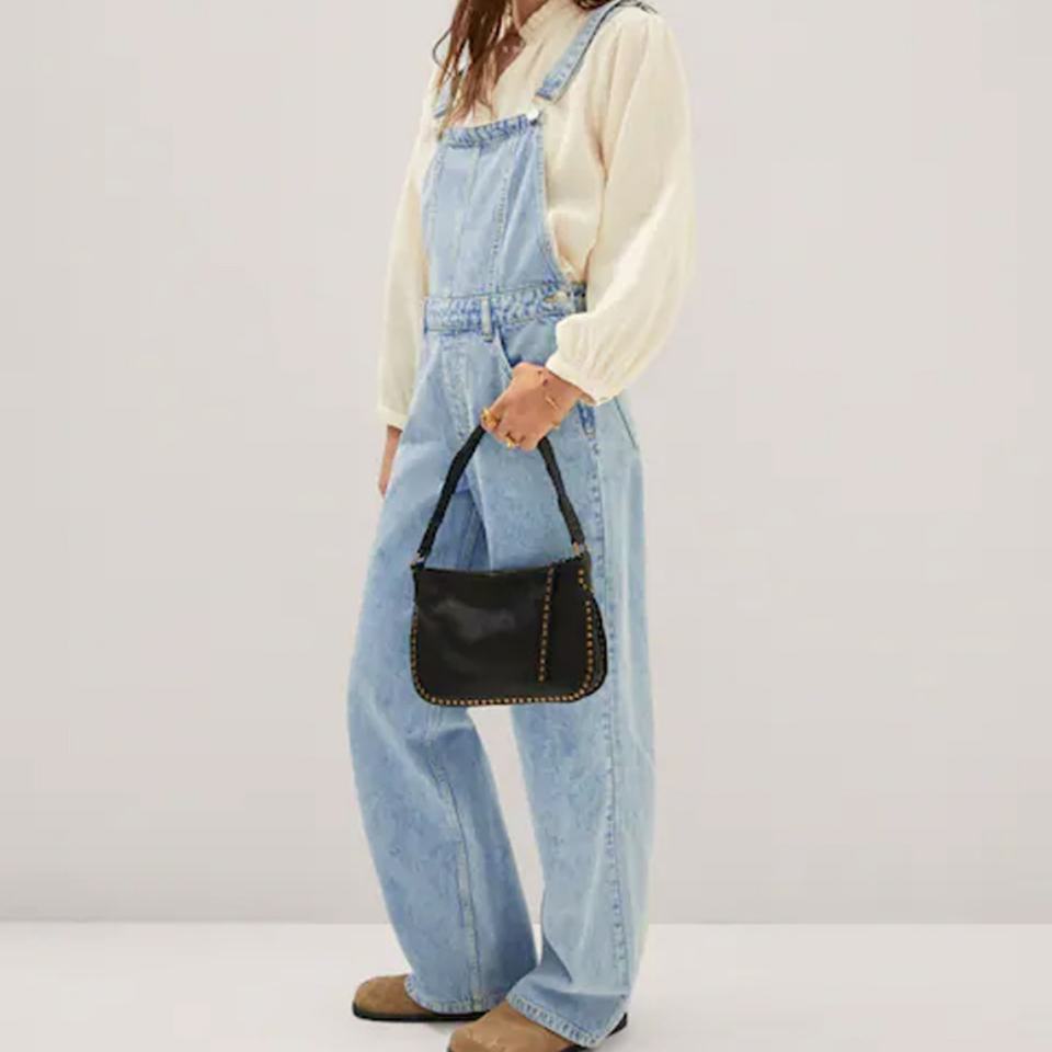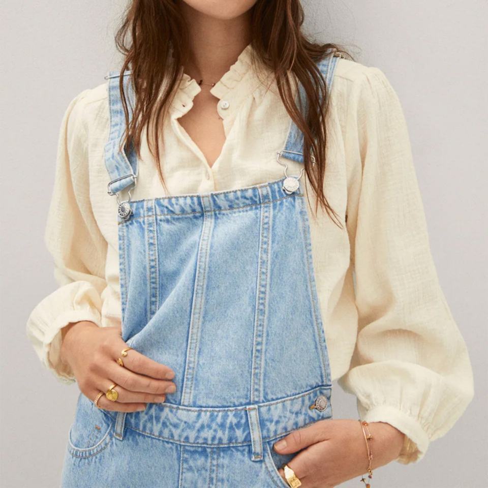 เอี๊ยมยีนส์ทรงบอยเฟรนด์สีฟ้าอ่อนสไตล์วินเทจสำหรับผู้หญิง