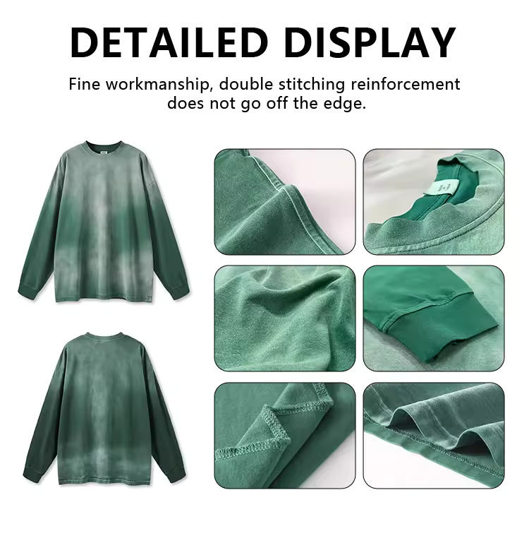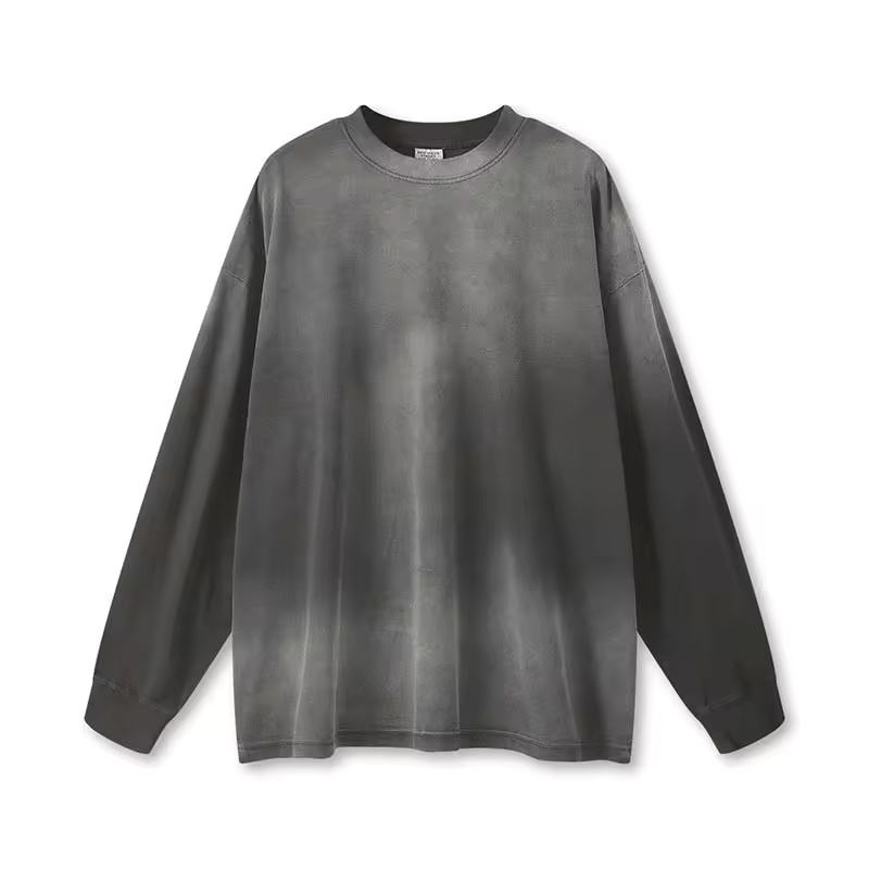 เสื้อยืดแขนยาวผู้ชายสไตล์วินเทจทรงโอเวอร์ไซส์ ผ้าคอตตอน 100% น้ำหนัก 240 กรัม ย้อมสีแบบไทได ผ้าเทอร์รี่ถักเนื้อแน่น