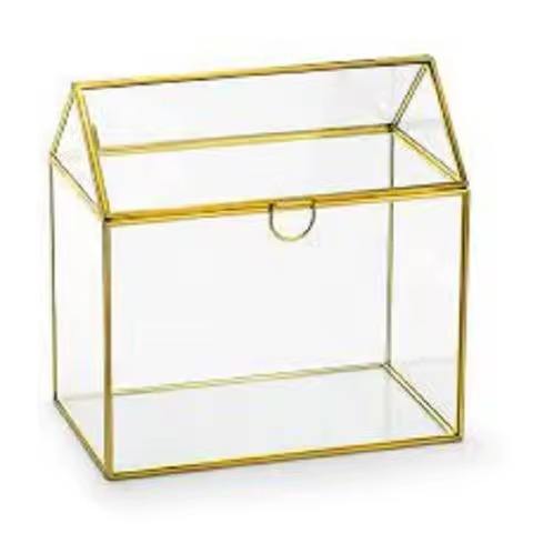กล่องอัญมณีโลหะทองเหลืองดีไซน์กระจกฐานแก้วสไตล์วินเทจสำหรับเก็บเครื่องประดับกล่องเก็บเครื่องประดับ
