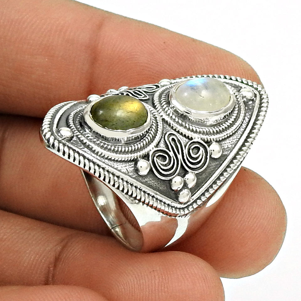 ดูวินเทจมีสไตล์แหวนเงินแท้ 925 ลาบราดอร์ไทต์ธรรมชาติเรนโบว์มูนสโตนผู้ผลิตเครื่องประดับแฮนด์เมดออกแบบไม่ซ้ําใคร