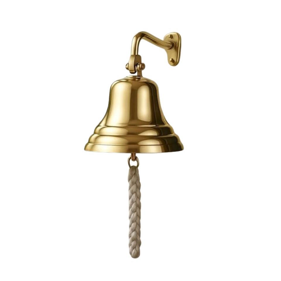 กระดิ่งเรือทองเหลืองโบราณติดผนังสำหรับตกแต่งภายนอก ตกแต่งภายใน ตกแต่งสวน และประตูรั้ว