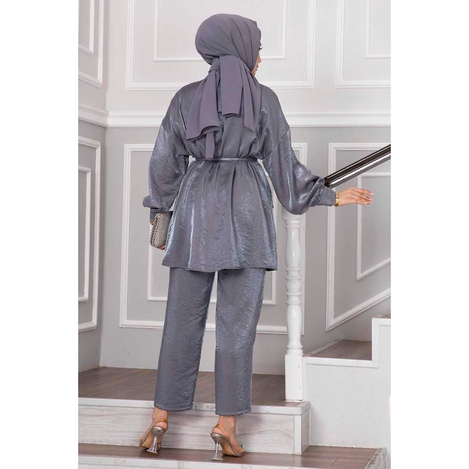ชุด2ชิ้นสุดหรูวินเทจสีเทาพร้อมกระดุมลายดอกไม้หรูหรากระดุมแม่เหล็กรูปวงรีและลวดลายสลัก