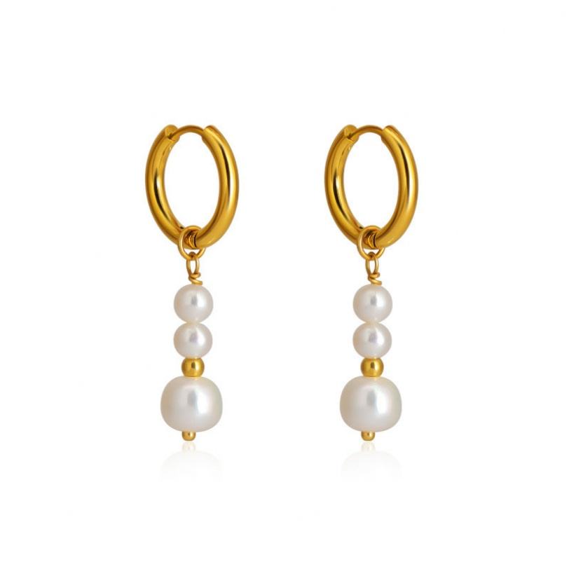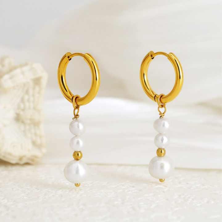 เครื่องประดับหรูหราสไตล์วินเทจสำหรับผู้หญิง ต่างหูห่วงสแตนเลสชุบทองประดับมุก ไม่ลอก ไม่ซีดจาง ขายส่งจำนวนมาก