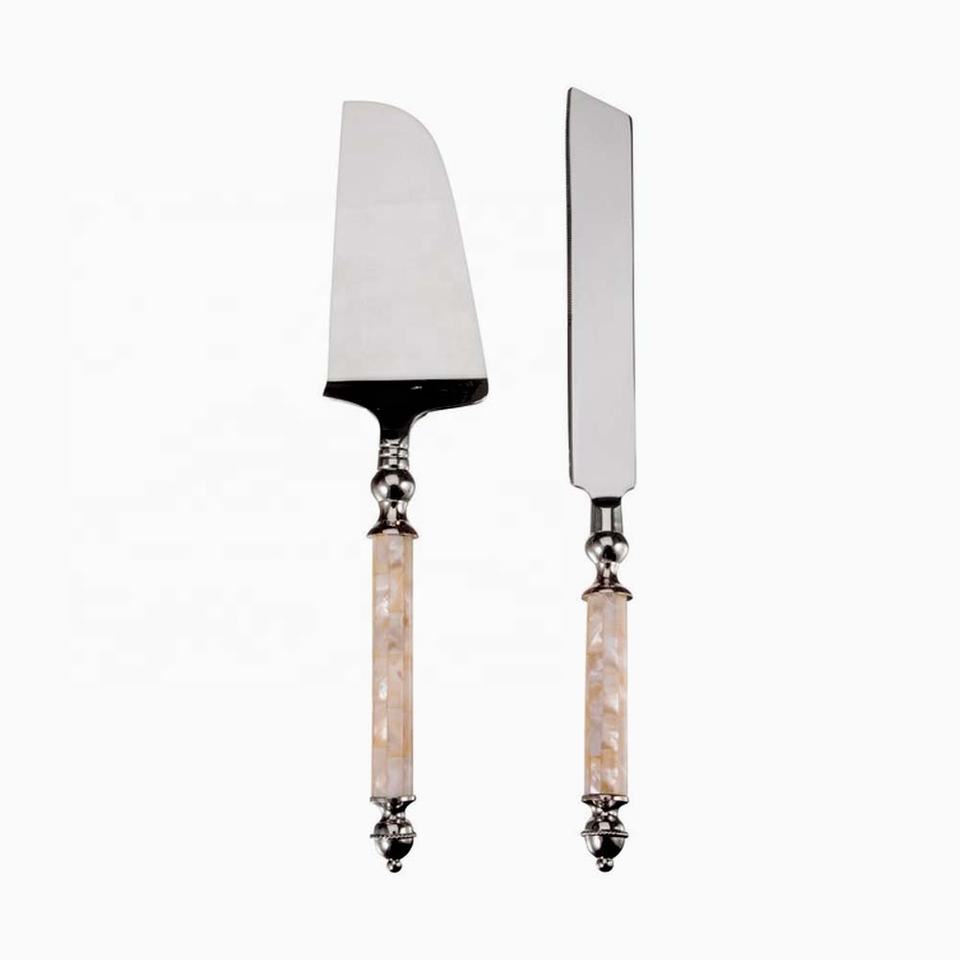 ชุดมีดเค้กสแตนเลสสำหรับงานแต่งงานชุดเค้กวินเทจทำในอินเดียแบบใหม่ชุบเงินสำหรับงานเลี้ยง
