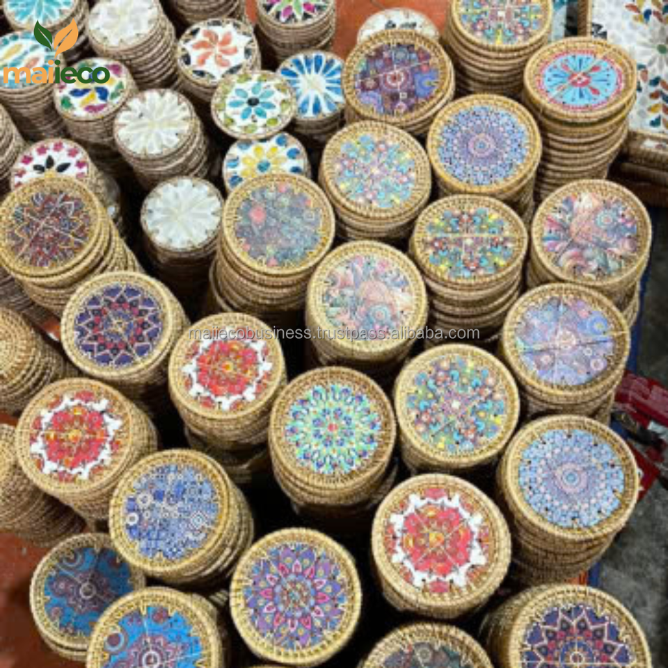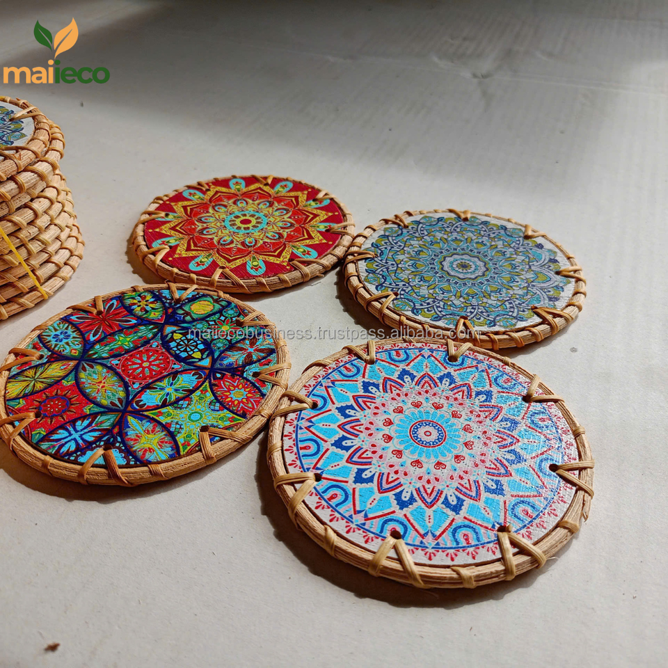 คำอธิบาย:ที่รองแก้วหวายลายแมนดาลาแบบวินเทจ