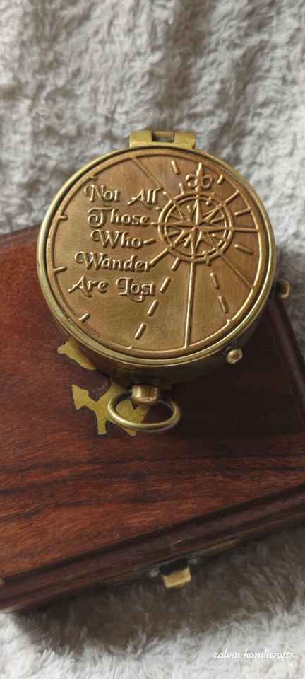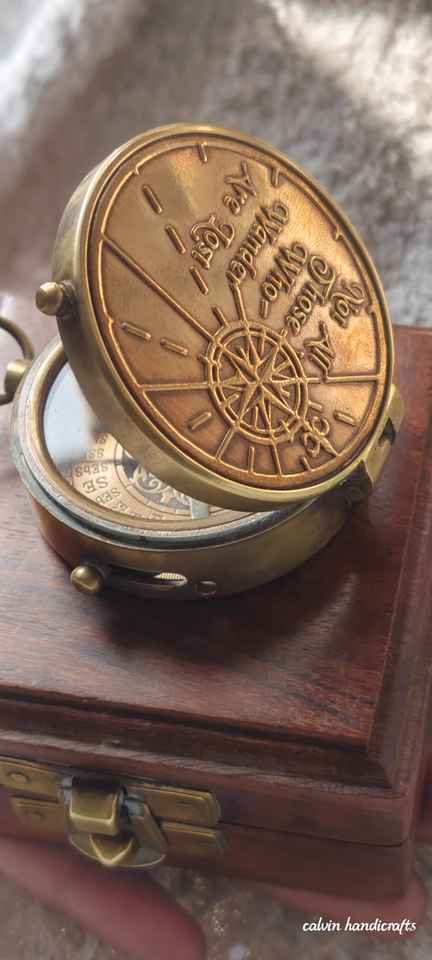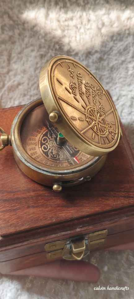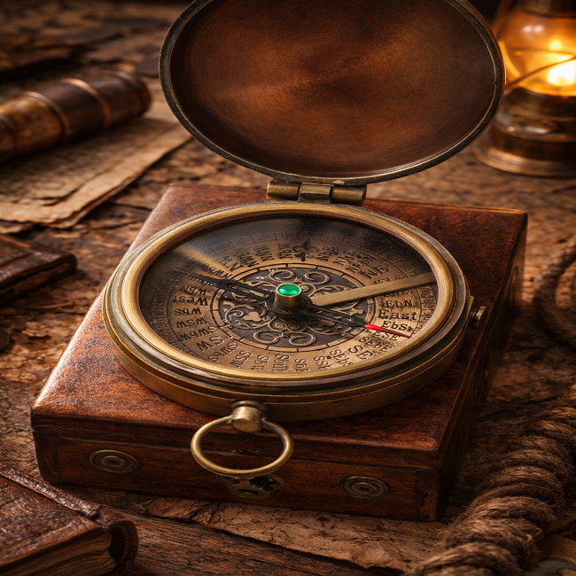 กล่องไม้เก็บเข็มทิศทะเลแบบโบราณ ลายโลหะขัดเงา ทรงกลม ลายนูน | ของตกแต่งโต๊ะทำงาน Explorer Gift Calvin Handicraft