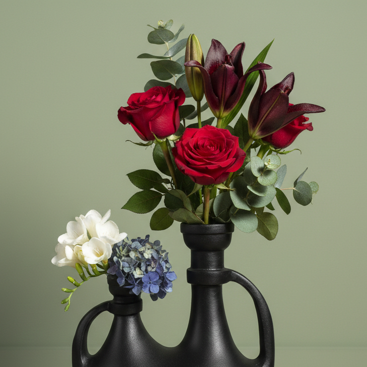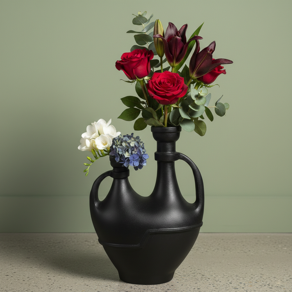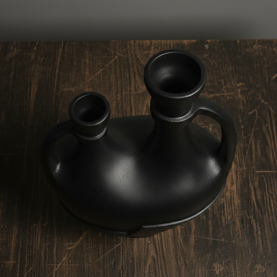 แจกันดอกไม้อะลูมิเนียมหล่อสีดำด้านสไตล์วินเทจ แจกันดอกไม้พอร์ซเลนทรงนามธรรมแบบสองปาก ดีไซน์ทันสมัย สำหรับตกแต่งบ้าน