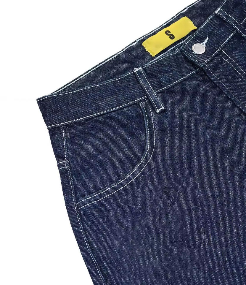กางเกงยีนส์ขาสั้นผู้ชายวินเทจสไตล์ลำลองระบายอากาศมีกระเป๋าหลวมผ้าเดนิมทำงานผ้าฝ้าย100%