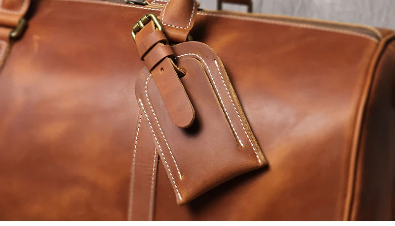 กระเป๋าดัฟเฟิลกระเป๋าเดินทางกลางแจ้งของผู้ชายวินเทจกันน้ำขนาดใหญ่มีซิปปิดหนังแท้น้ำหนักเบาพกพาได้สูง