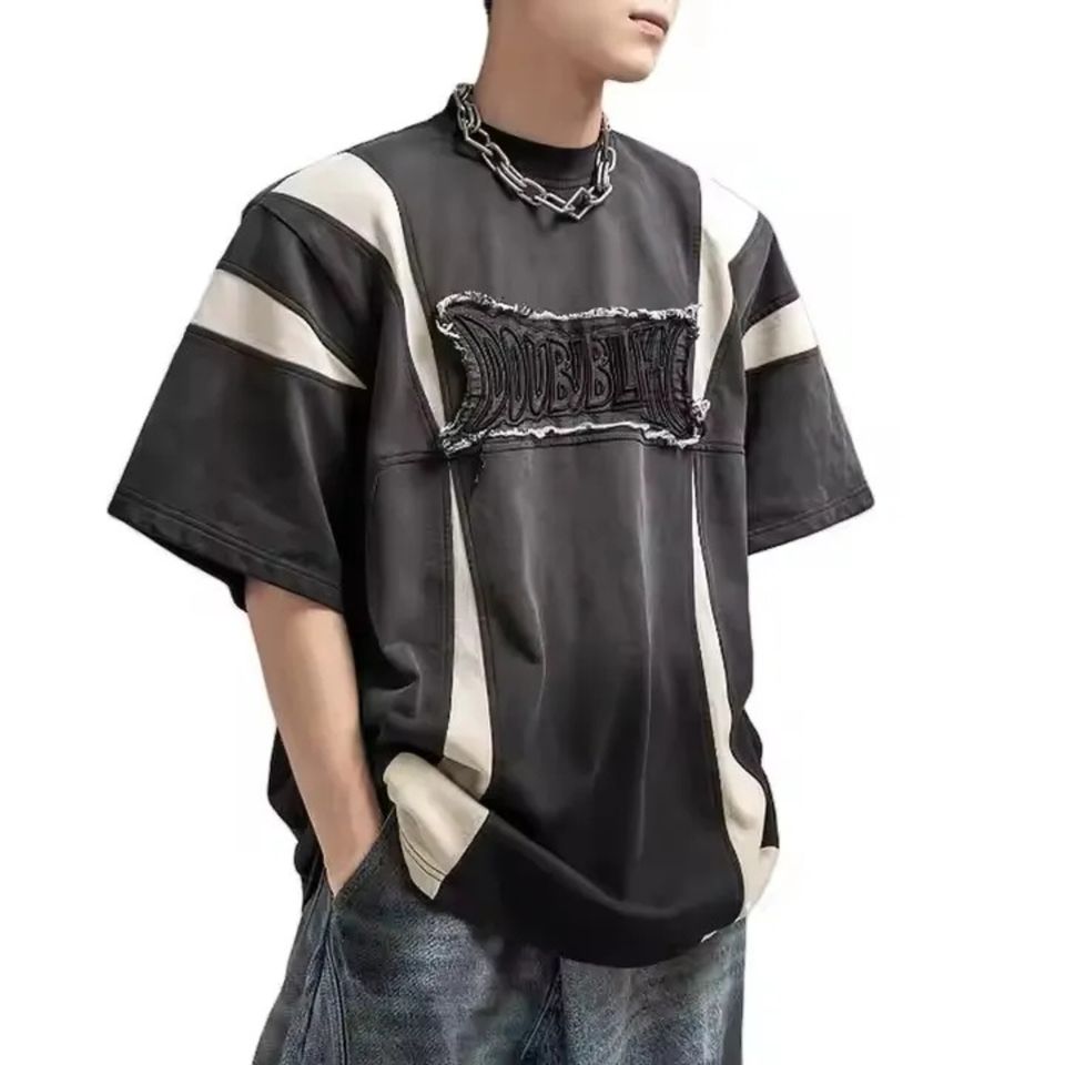 เสื้อยืดวินเทจผู้ชายทรงโอเวอร์ไซส์ ล้างสีแบบแอซิด งานปักเท่ๆ พรีเมียม ผ้าแคนวาสเนื้อหนา 100% คอตตอน ระบายอากาศได้ดี ป้องกันรังสียูวี แขนสั้น