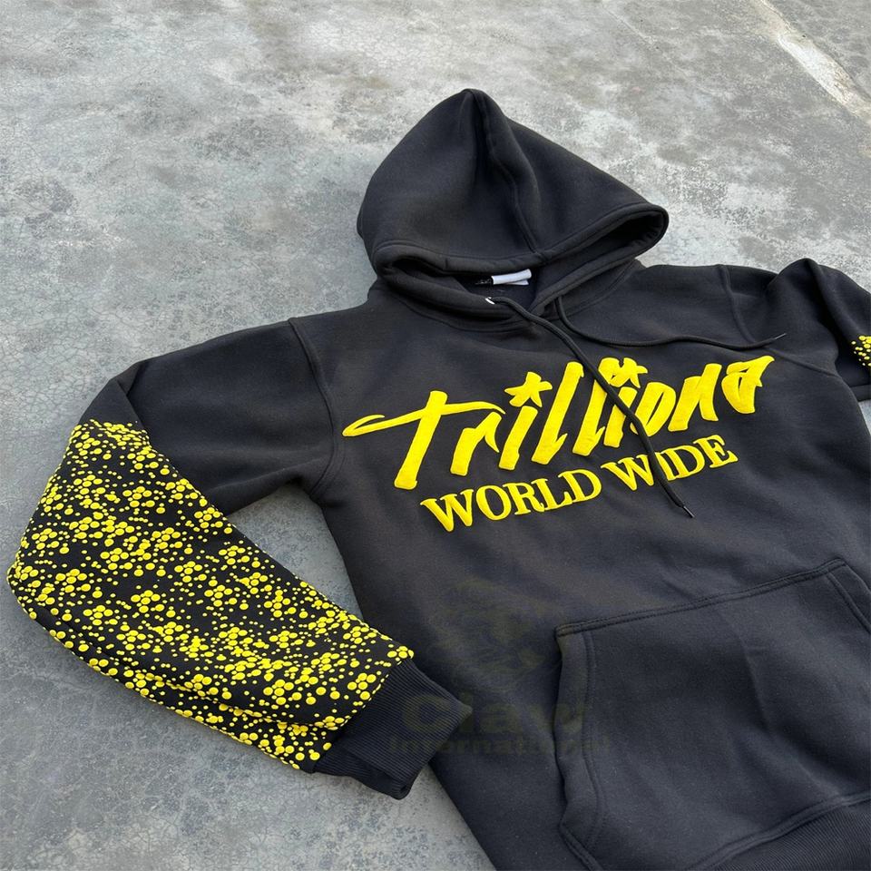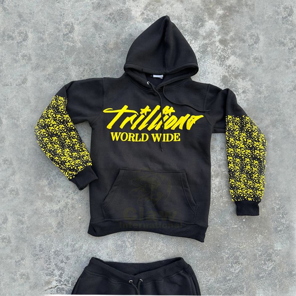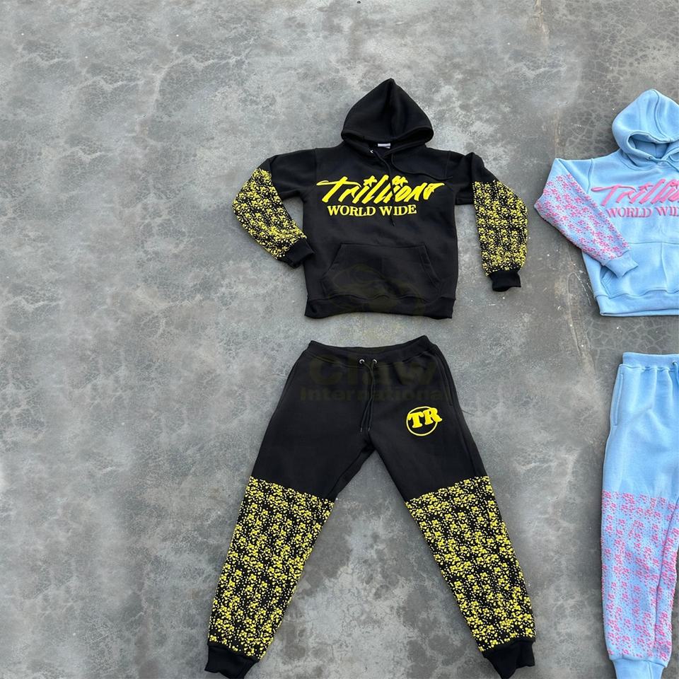 ชุดวอร์มวินเทจของผู้ชายเสื้อผ้าฝ้าย100% เทอร์รี่กางเกงมีฮู้ดพิมพ์ลายจางหายไป