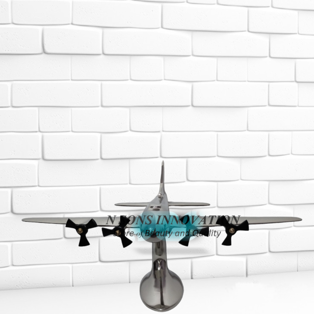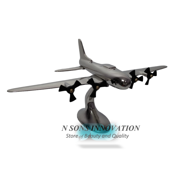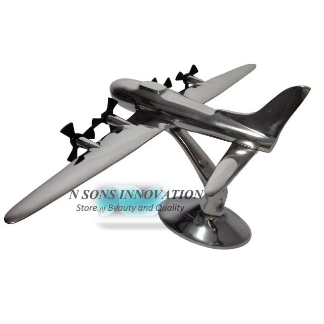 เครื่องบินโลหะแบบวินเทจใบพัดสี่ใบพัดรูปปั้นเครื่องบินอลูมิเนียมขัดเงาตกแต่งการบินย้อนยุคโต๊ะทำงานที่หรูหรา