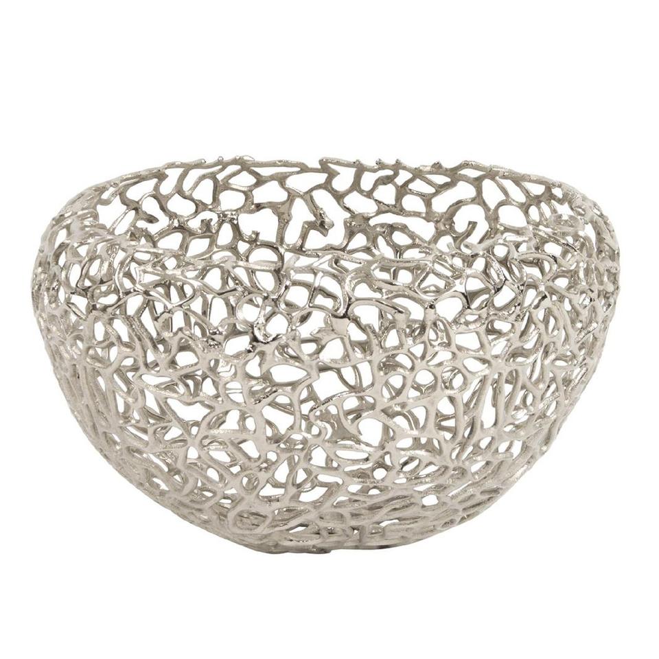 Vintage Metal Aluminum Casting Round Serving and Fruit Bowl with Nickel Plated Finished on the Base Bowl