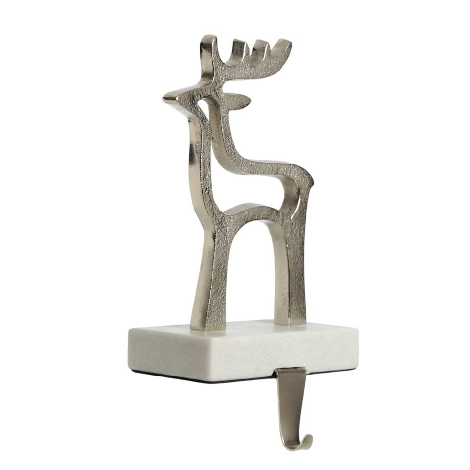 ที่แขวนถุงเท้าคริสต์มาสรูปกวางเรนเดียร์สีทองวินเทจ พร้อมฐานและตะขอ ดีไซน์กวางโปร่งลายฉลุ ตกแต่งชั้นวางของอย่างสวยงาม