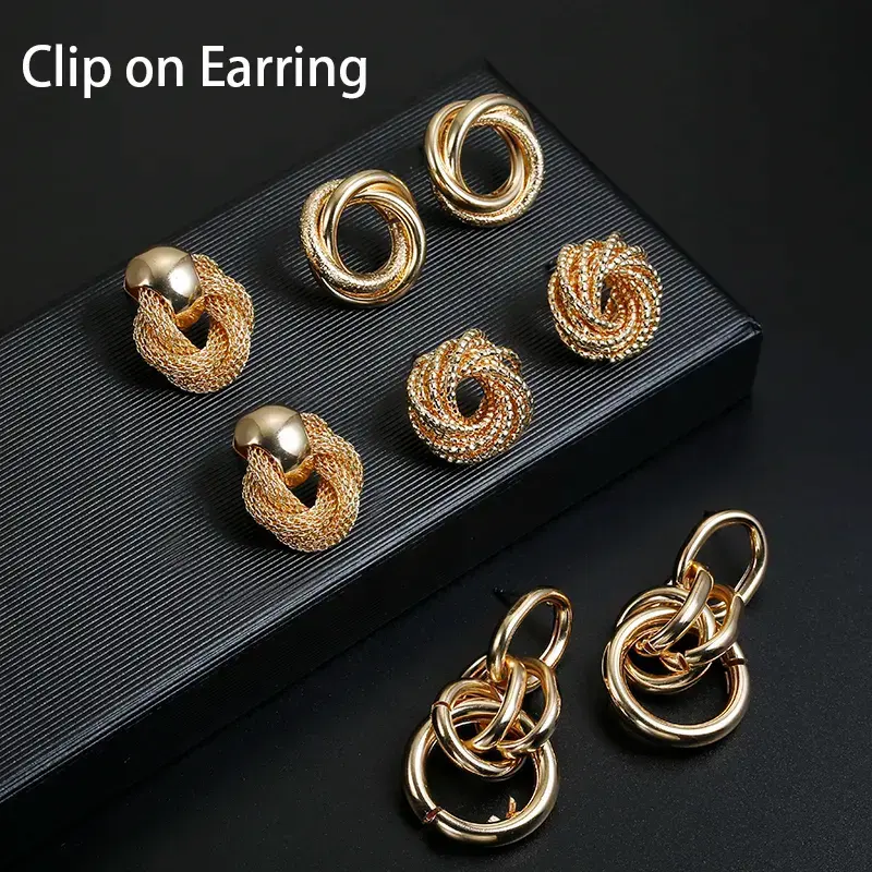 ต่างหูหนีบแบบวินเทจทรงเรขาคณิต ชุบทอง โลหะผสมทองแดงและสังกะสี ประดับเพชรและมุก ดีไซน์ทันสมัยสไตล์วินเทจ