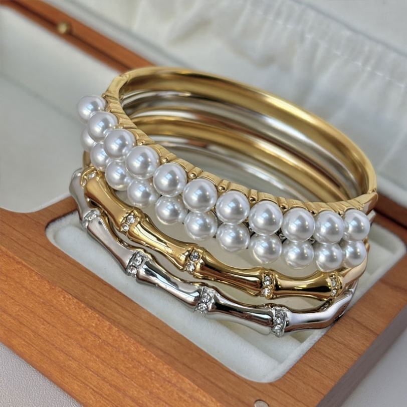 กำไลข้อมือโลหะสแตนเลสสตีลวินเทจ ดีไซน์หรูหรา แฟชั่นทันสมัย สามารถซ้อนกันได้ ปรับแต่งได้สำหรับสุภาพสตรี