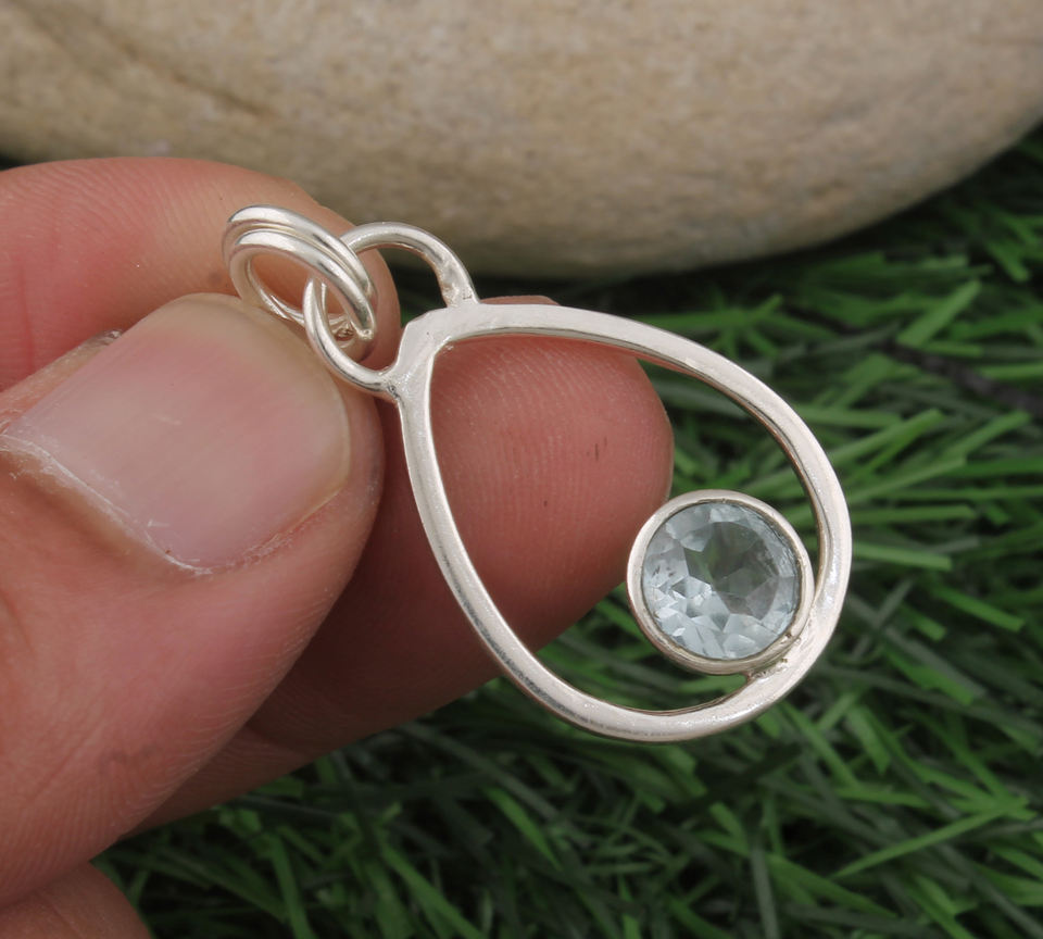 จี้บลูโทแพซสไตล์วินเทจมินิมอล เงินแท้ 925 ชุบแพลตตินัม สร้อยคอประดับพลอยขนาดเล็ก เครื่องประดับสำหรับใส่ซ้อนกัน