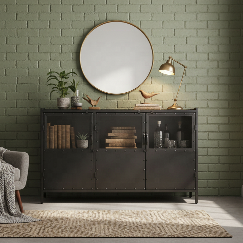 ตู้บุฟเฟต์ตู้เหล็กโบราณอุตสาหกรรมโลหะทำด้วยมือสไตล์วินเทจสำหรับโฮมออฟฟิศทางเข้าโรงแรม
