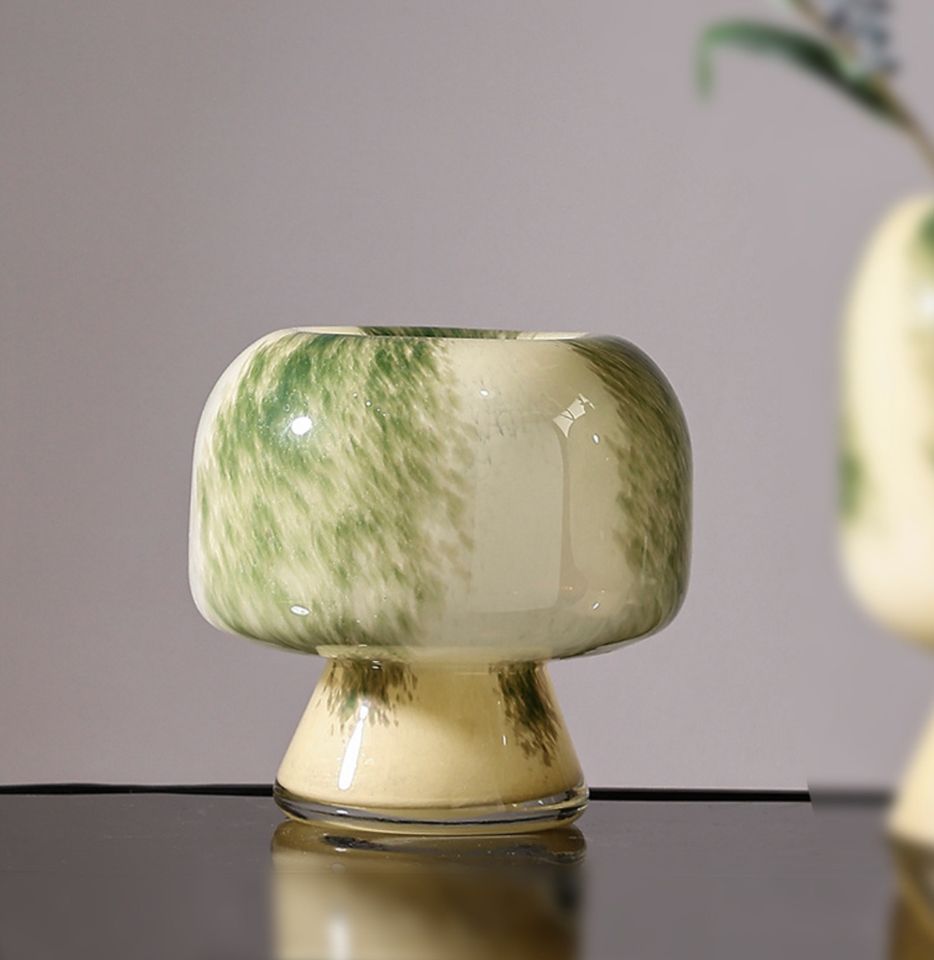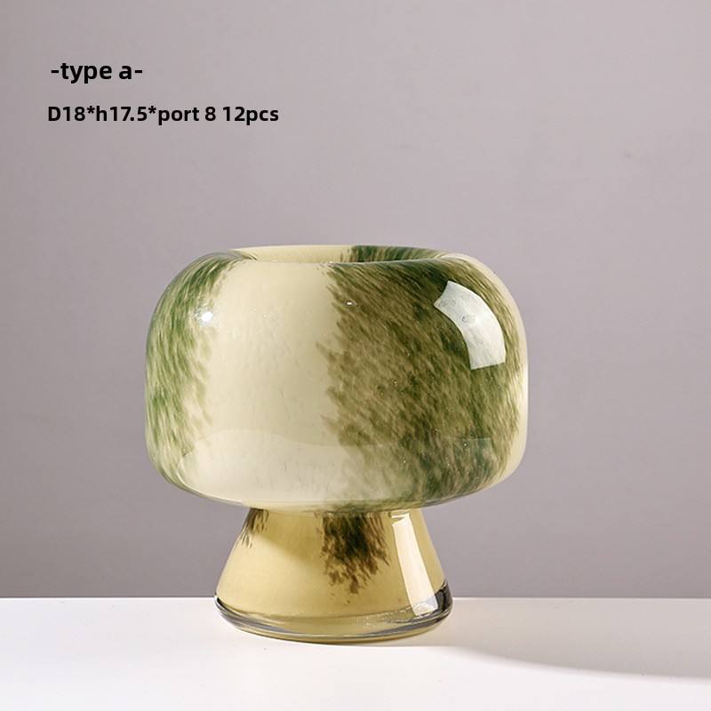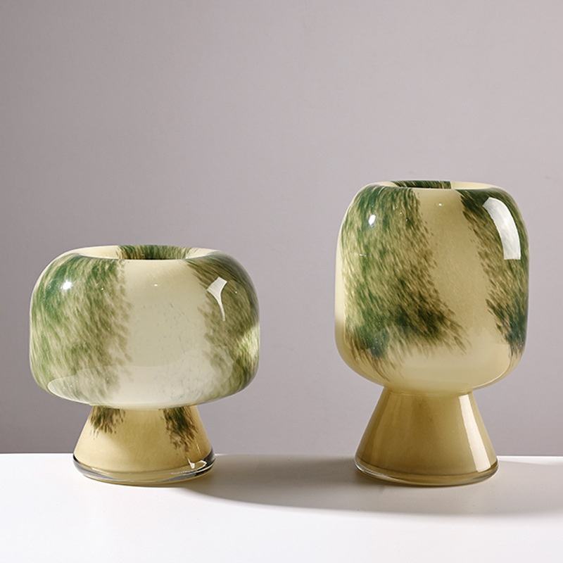 แจกันแก้วทรงสูงสำหรับตกแต่งบ้านสไตล์วินเทจสีเขียว Wabi-Sabi