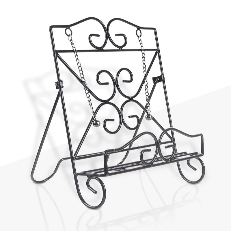 ชั้นวางตำราอาหารเหล็กดัดสไตล์วินเทจสมัยใหม่ ปรับระดับได้ สีดำ สำหรับตกแต่งบ้าน สำนักงาน และห้องนั่งเล่น