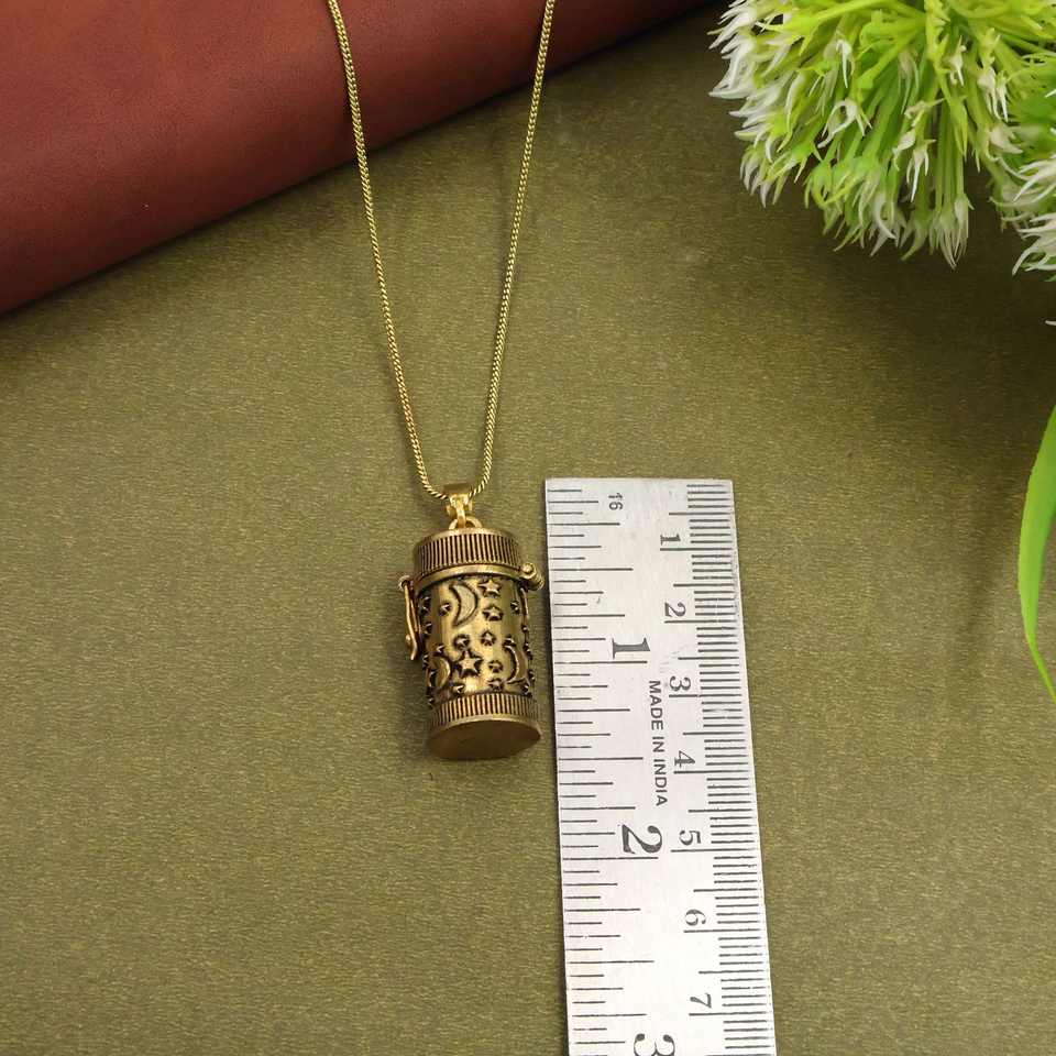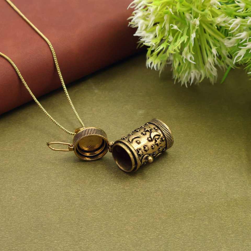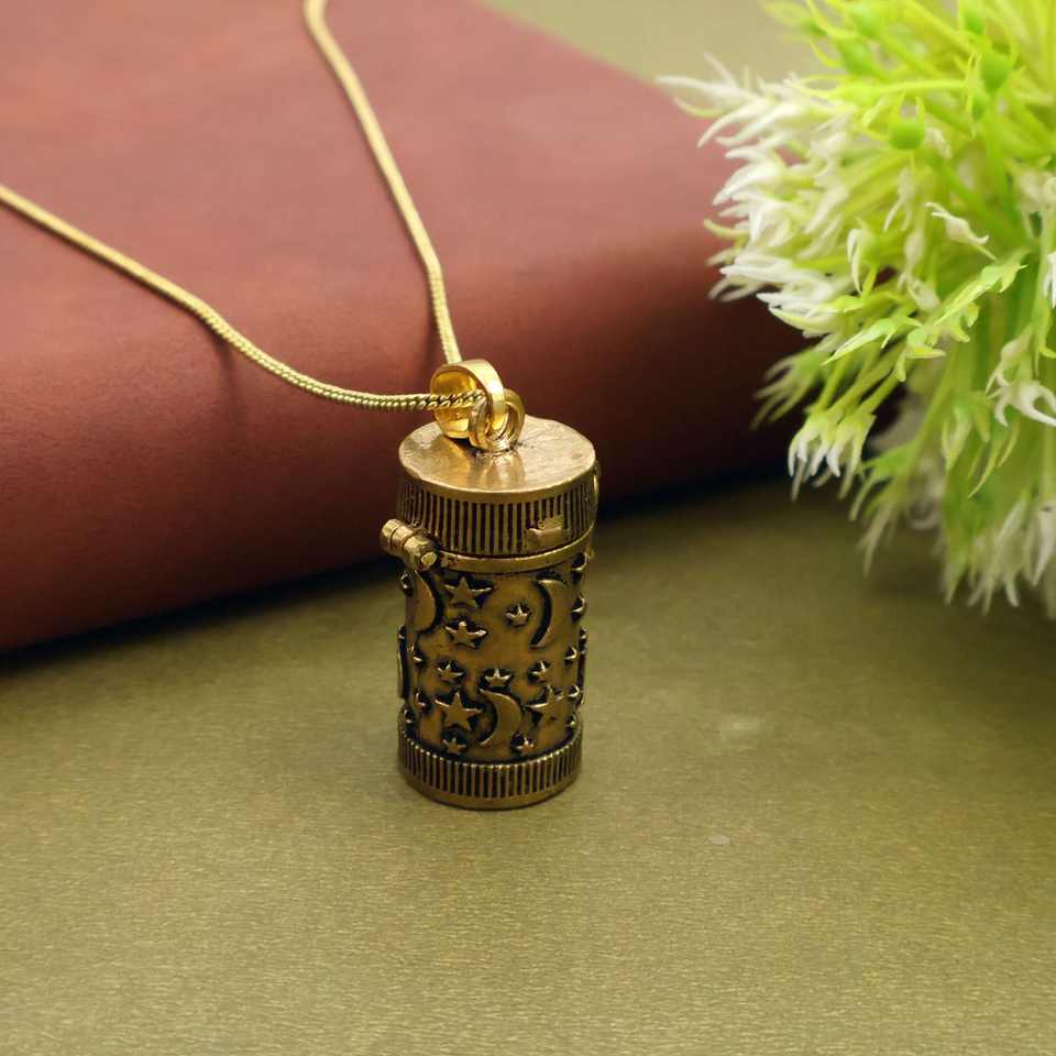 สร้อยคอจี้ทรงกระบอกลายพระจันทร์และดวงดาวสไตล์วินเทจ, จี้กล่องอธิษฐานสีทองโบราณ, เครื่องประดับช่องลับสไตล์เรโทร