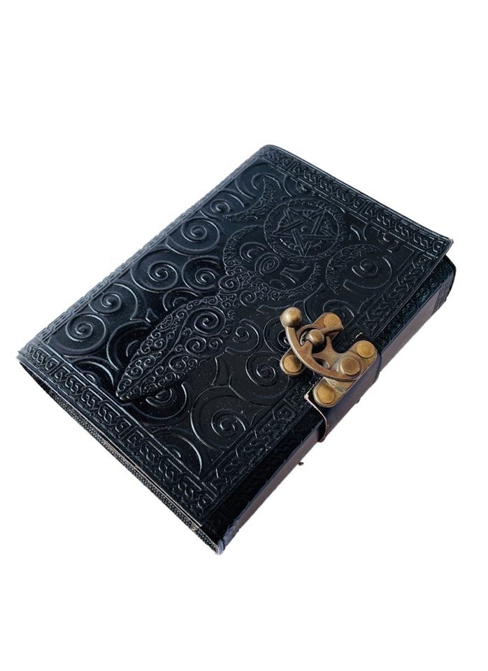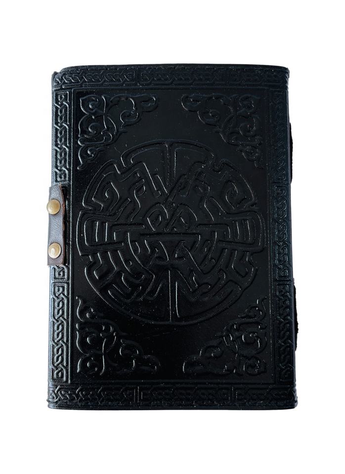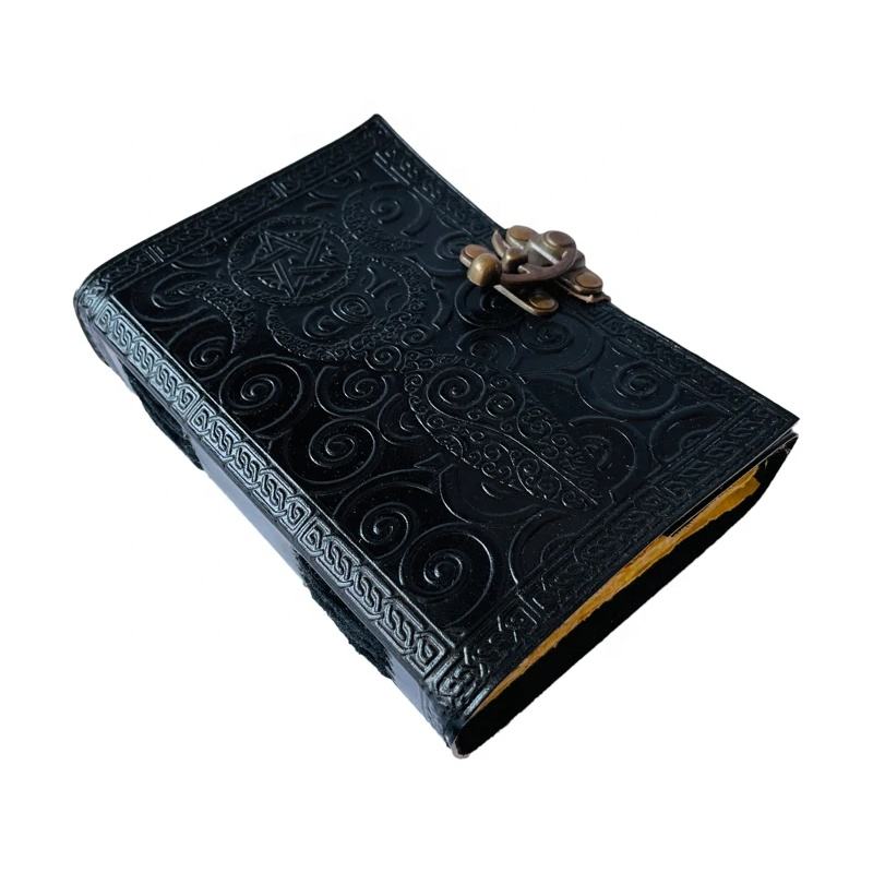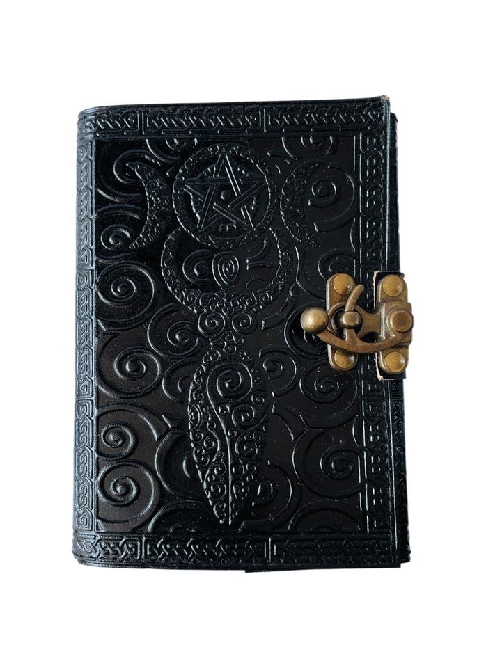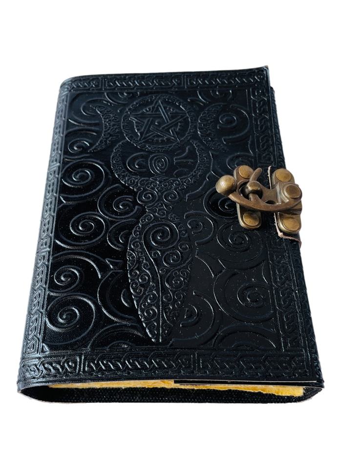 สมุดบันทึกหนังลายดาวห้าแฉกสไตล์วินเทจ แม่ธรณี สำหรับเขียนเวทมนตร์ เซลติก วิคคา ทำมือ กระดาษดิบสีดำ