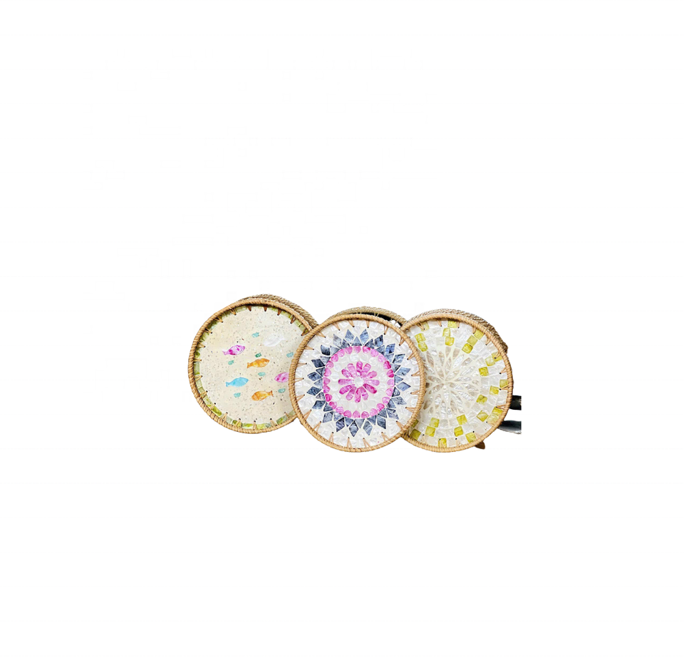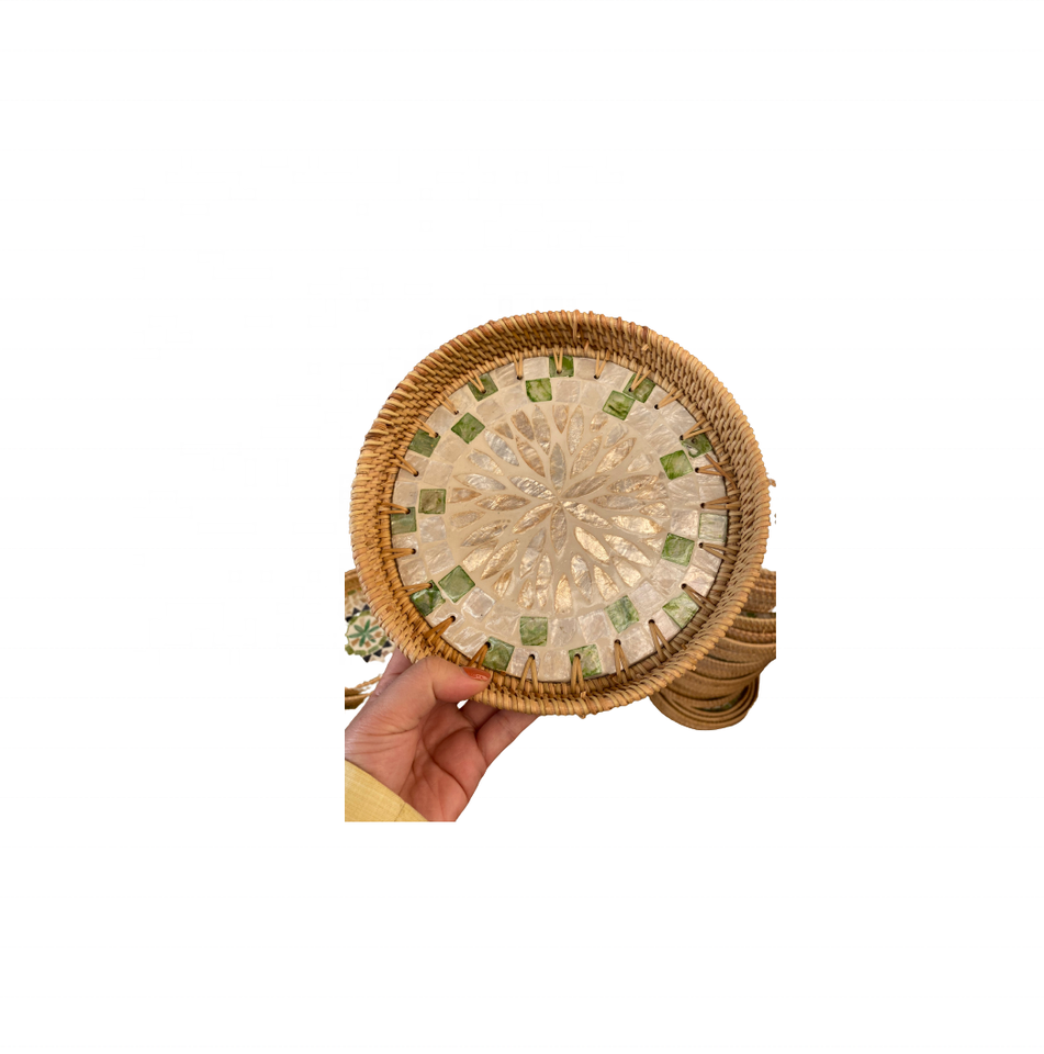 ถาดเสิร์ฟหวายไม้ไผ่ธรรมชาติวินเทจอุปกรณ์ตกแต่งโมเสกมุกสำหรับบ้านโรงแรมร้านอาหารงานฝีมือบริการ