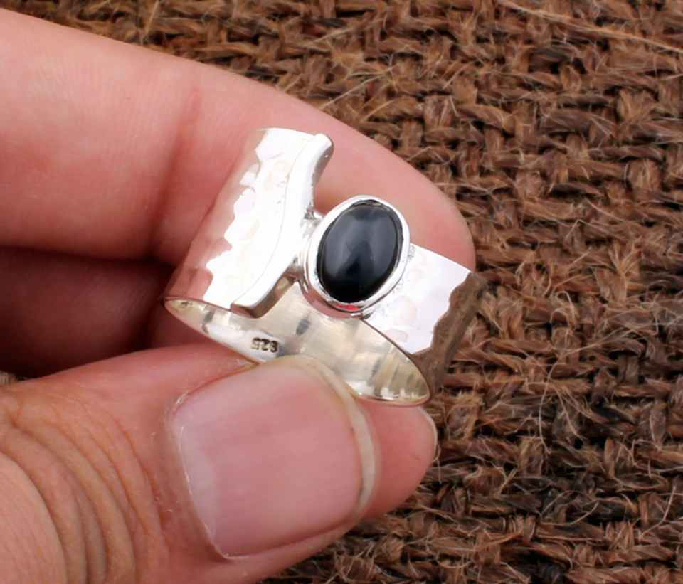 Vintage Natural Black Onyx Ring 925 Sterling Silver Women's Signet Ring Large Stone Square Band Style Party Jewelry Wholesale