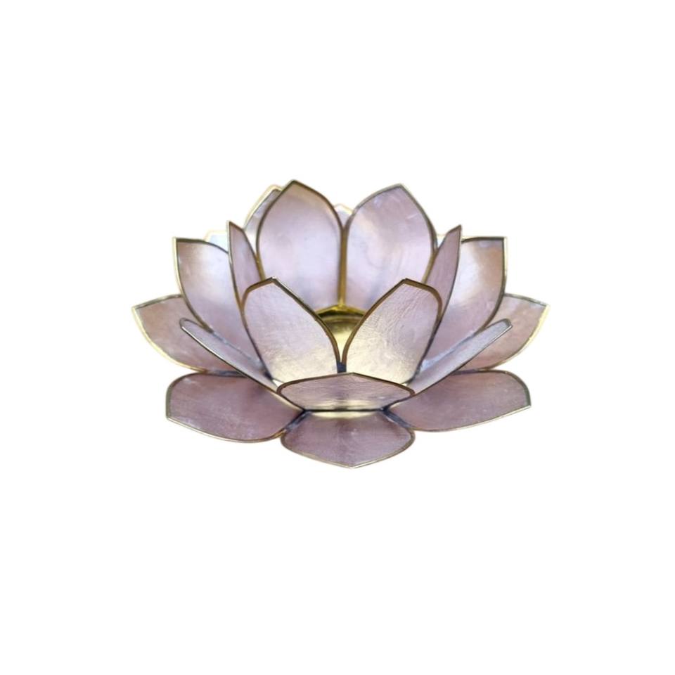 เชิงเทียนดอกบัวเปลือกหอยคาปิซธรรมชาติสไตล์วินเทจ ทำมือ สีชมพูและสีม่วง สำหรับงานแต่งงานและตกแต่งบ้าน