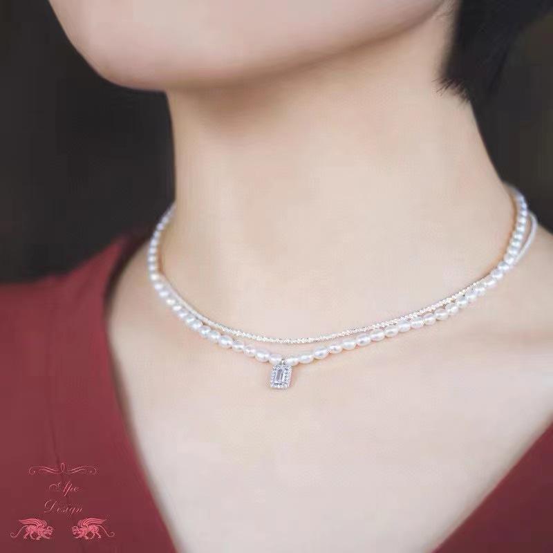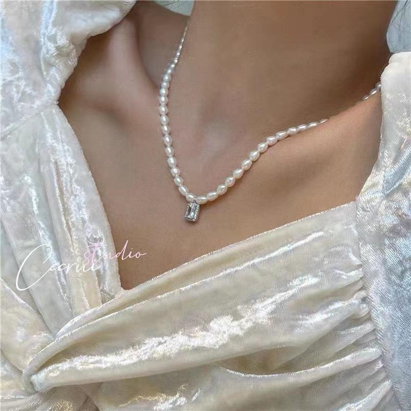 สร้อยคอมุกน้ำจืดทรงข้าวสาร วินเทจ ธรรมชาติ ขนาด 5-6 มม. หรูหราเบาๆ พร้อมสายแข็งแรงสำหรับ Xiaomi ใส่ได้ทั้งคอหรือบริเวณไหปลาร้า