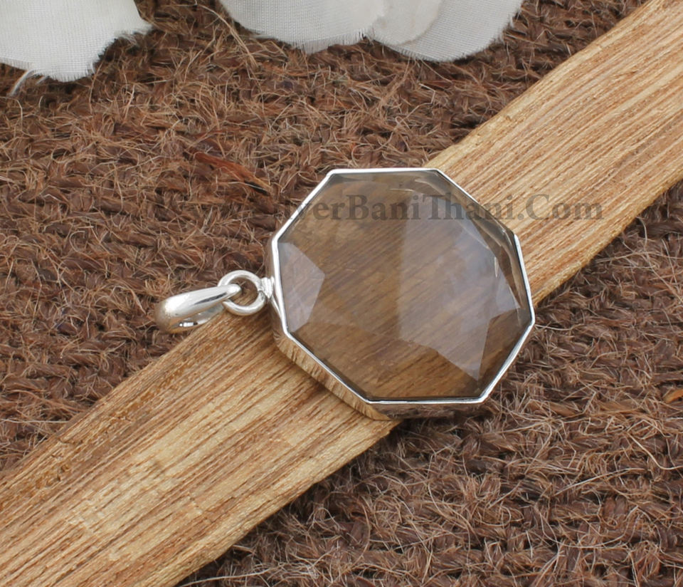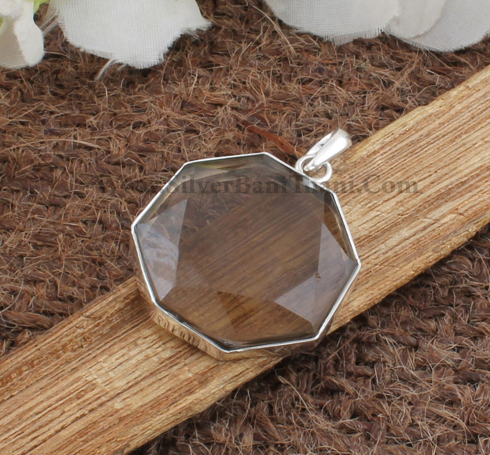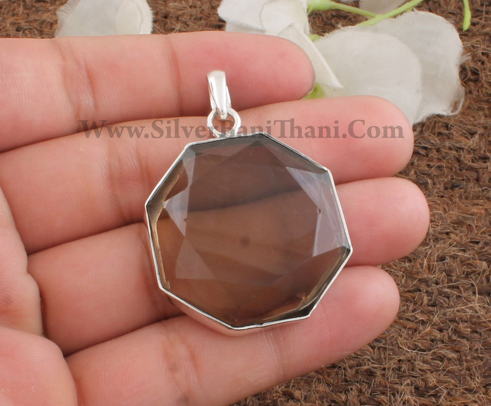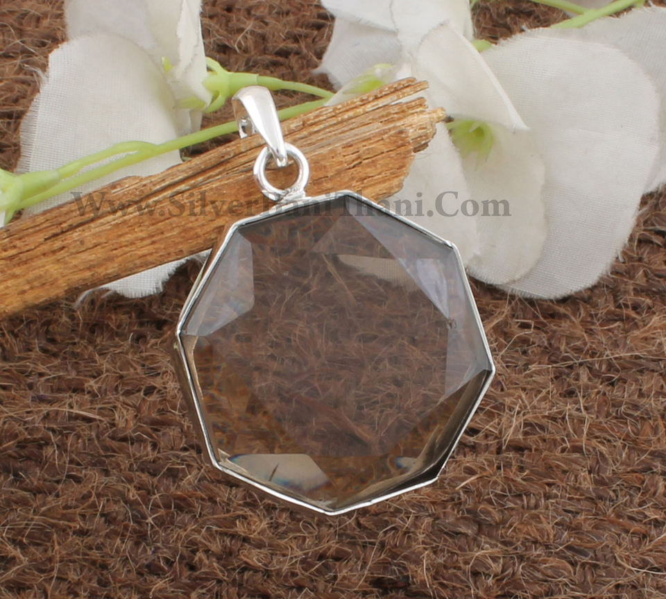 จี้ควอตซ์สโมคกี้ธรรมชาติสไตล์วินเทจ เงินแท้ 925 ชุบแพลตตินั่ม สร้อยคอสีน้ำตาลทำมือ เครื่องประดับอัญมณีสำหรับทุกเพศ