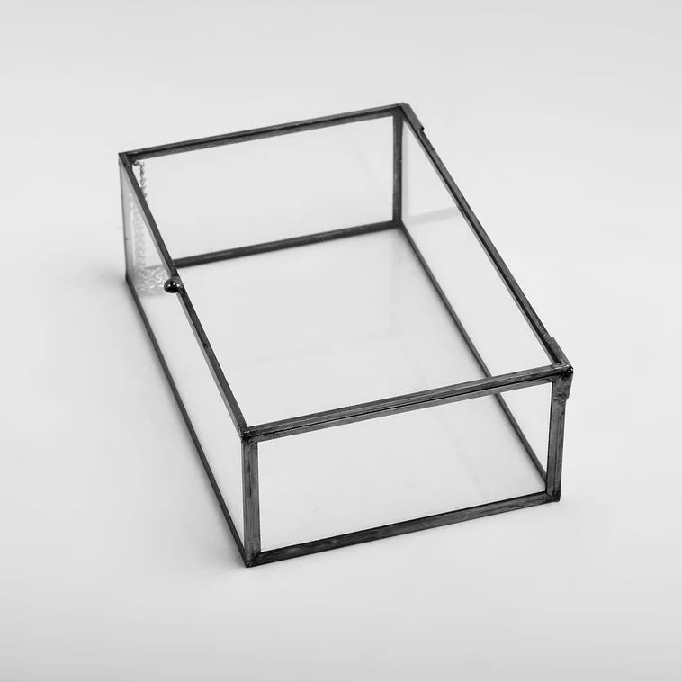 วินเทจมาใหม่กล่องแก้วที่เรียบง่ายสีดําสําเร็จรูปกล่องเก็บแก้วใสขนาดที่กําหนดเองตกแต่งบ้านและงานแต่งงาน