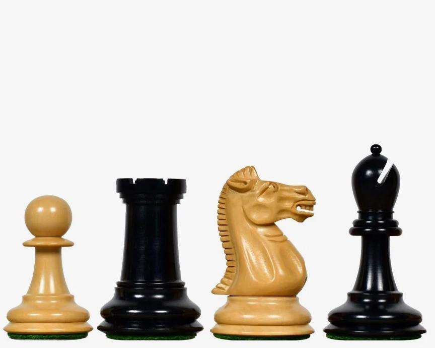 ชุดหมากรุกวินเทจ Nimzovich Staunton ตัวหมากรุกทำจากไม้มะเกลือและไม้บ็อกซ์วูด ขนาด 3.75 นิ้ว พร้อมตราประทับด้านข้างของกษัตริย์ ราคาถูก